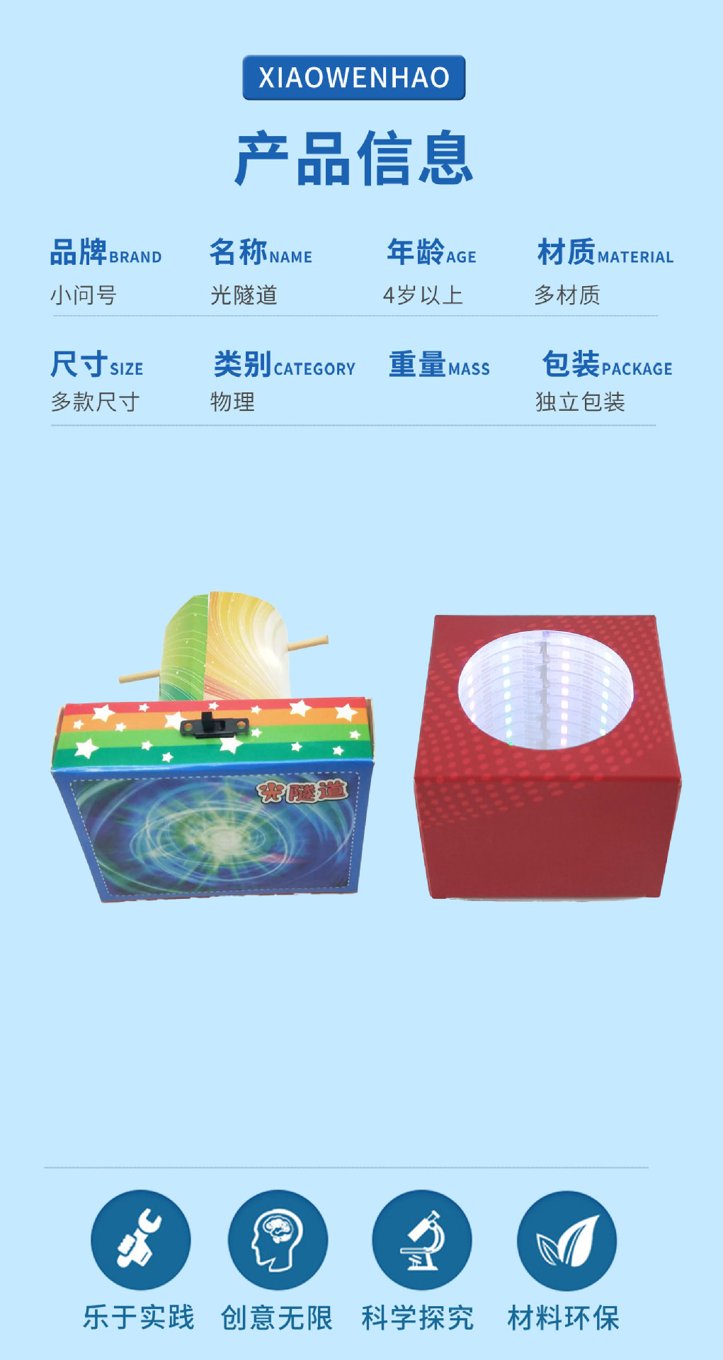 S5 광터널 유아 과학 실험 장비 작은 물음표 STEAM 교구 메이커 교육용 DIY 핸드메이드스토어 가기