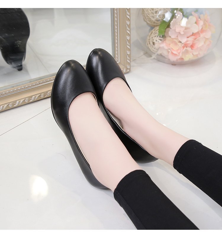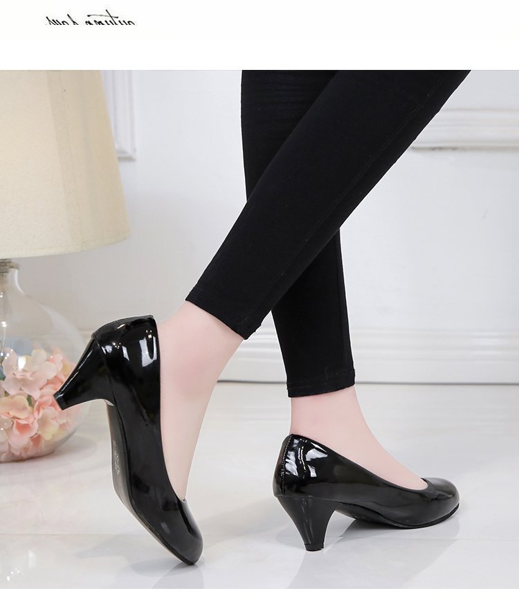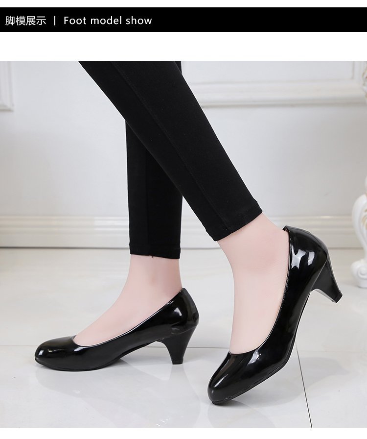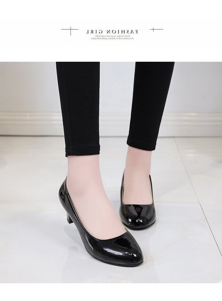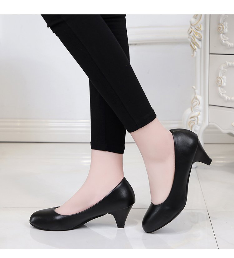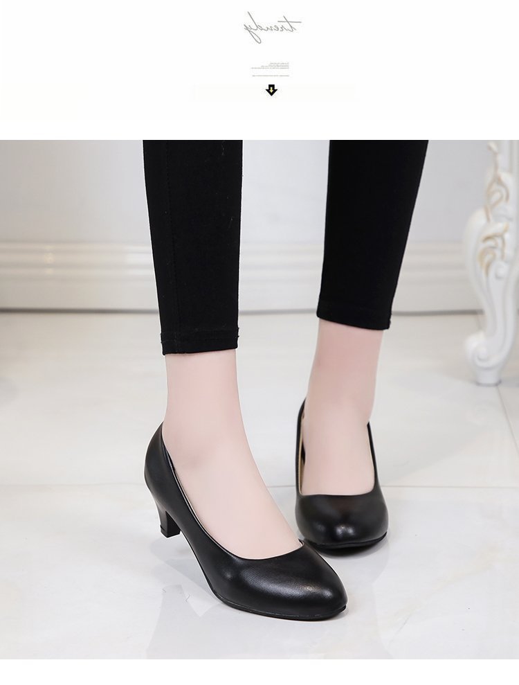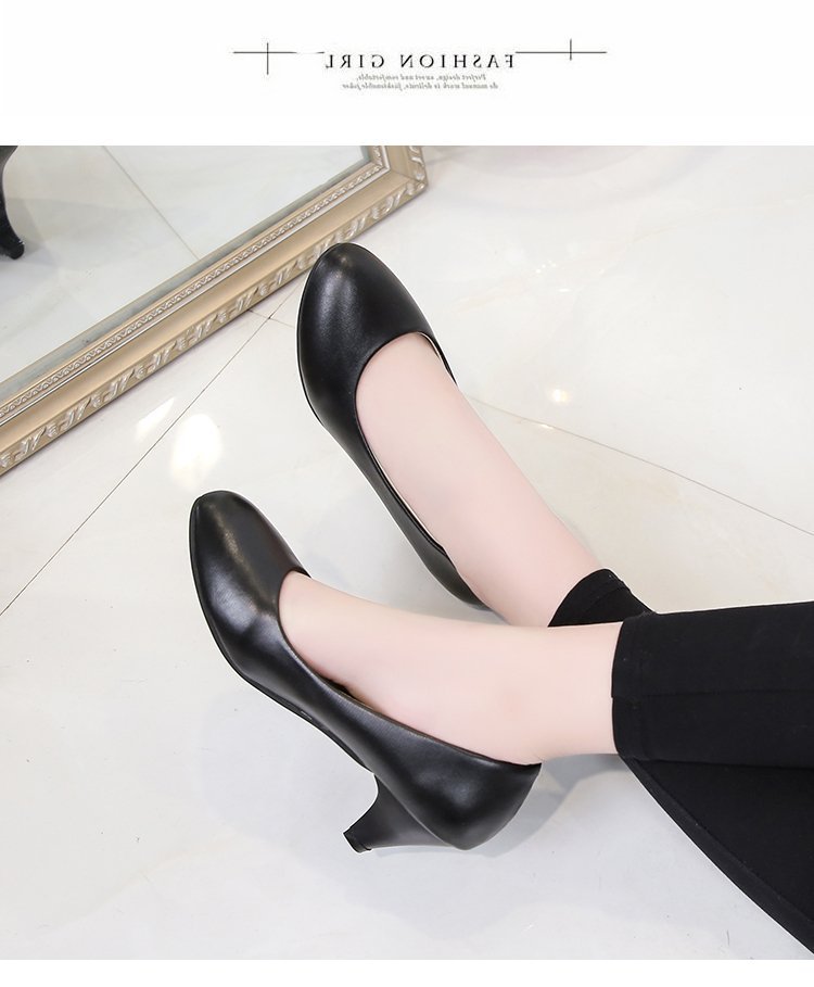 새로운 여자의 싱글 슈즈 블랙 라운드 발가락 두꺼운 굽 하이힐 전문 작업복 가죽 신발 정장 원피스 에티켓 작업 여성 신발스토어 가기