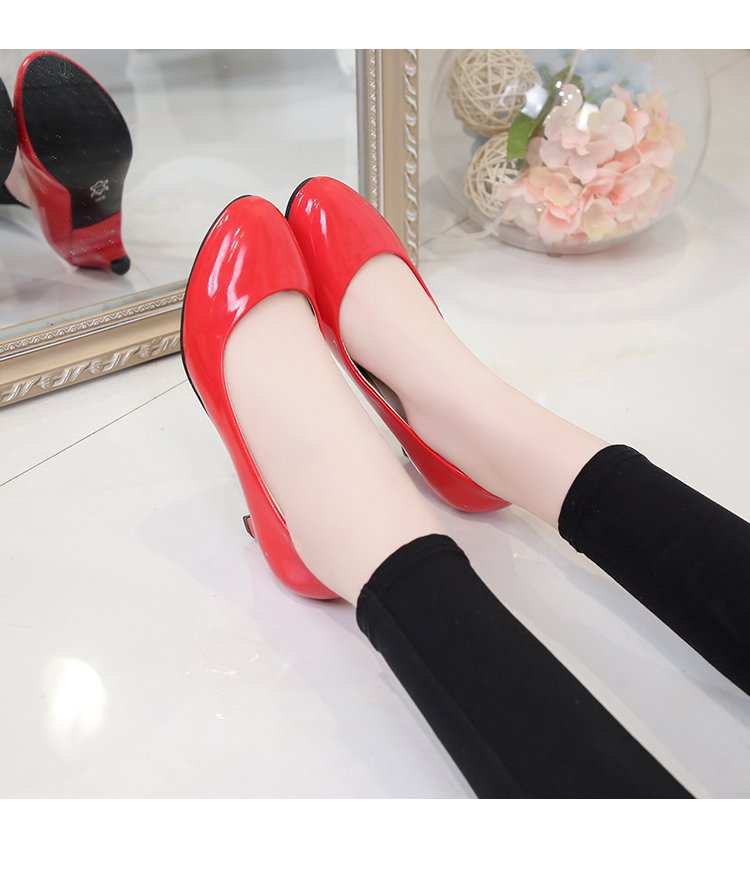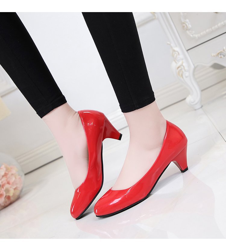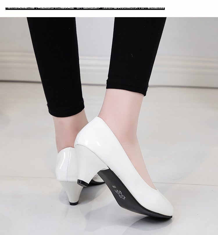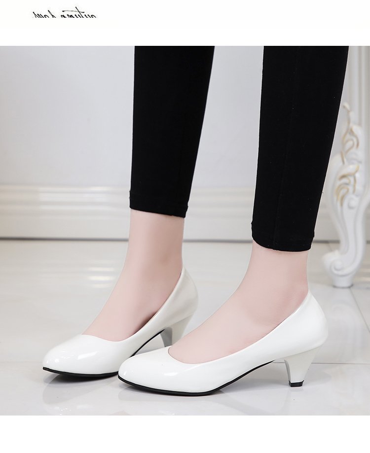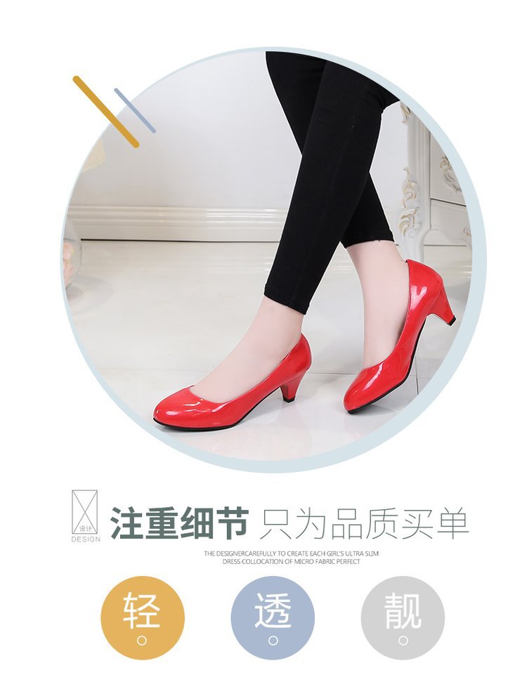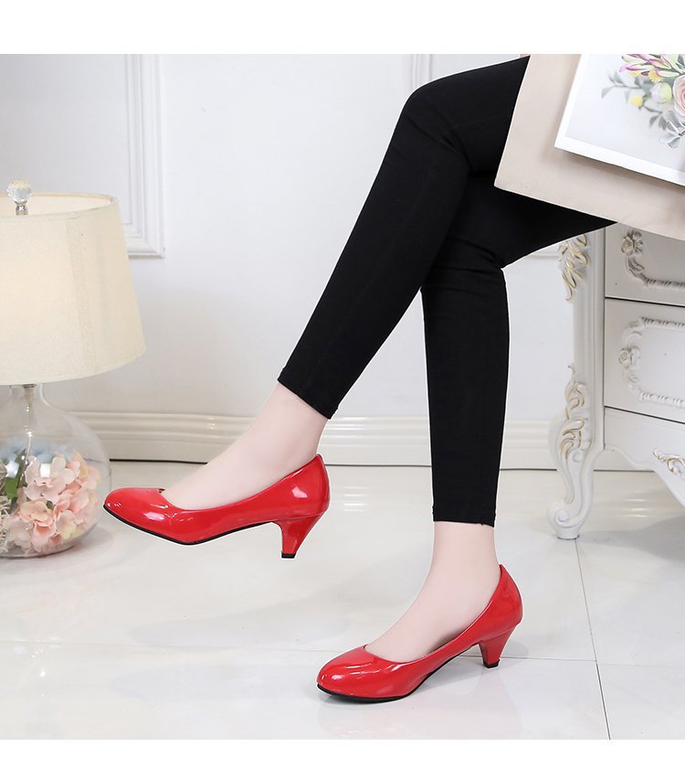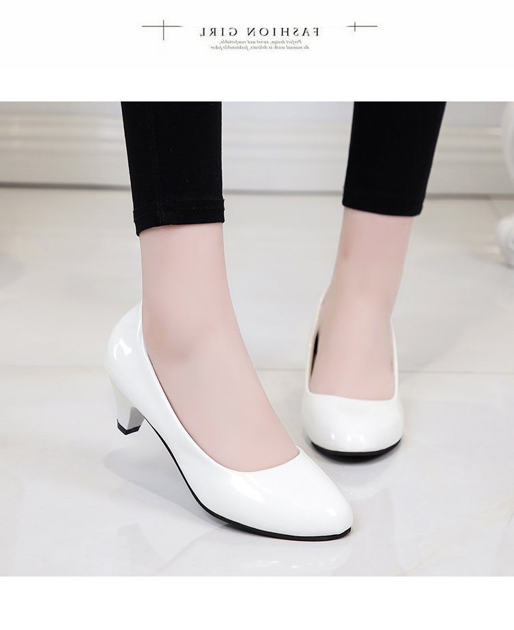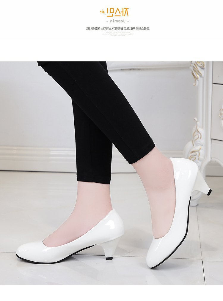 새로운 여자의 싱글 슈즈 블랙 라운드 발가락 두꺼운 굽 하이힐 전문 작업복 가죽 신발 정장 원피스 에티켓 작업 여성 신발스토어 가기