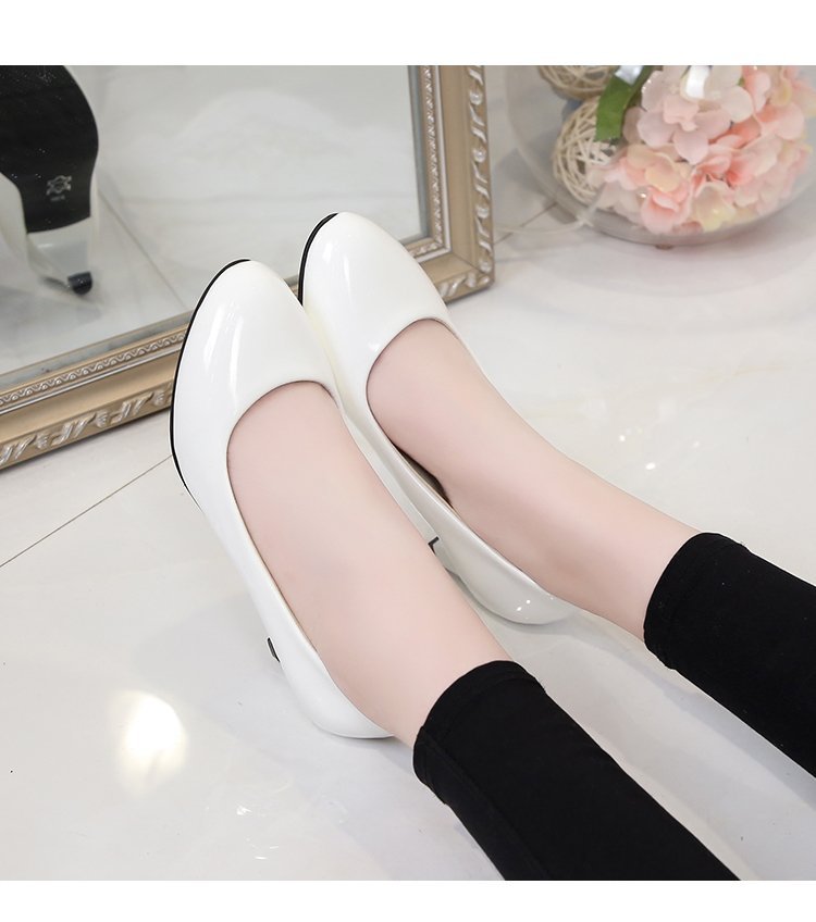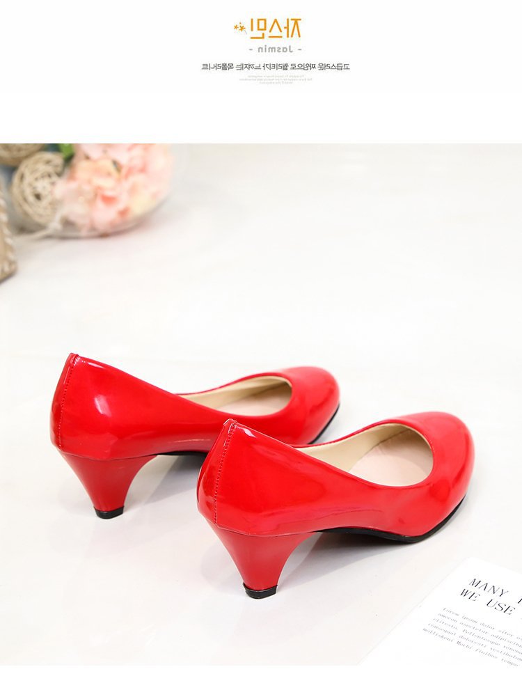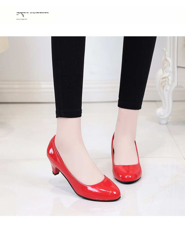 새로운 여자의 싱글 슈즈 블랙 라운드 발가락 두꺼운 굽 하이힐 전문 작업복 가죽 신발 정장 원피스 에티켓 작업 여성 신발