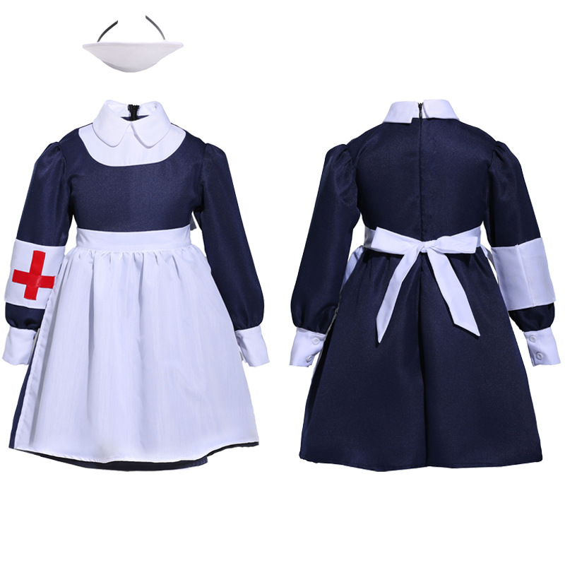 20.19 만 거룩한 날 아동 의류 간호사 코스프레 유니폼 소녀 블루 화이트 메이드 간호사 원피스