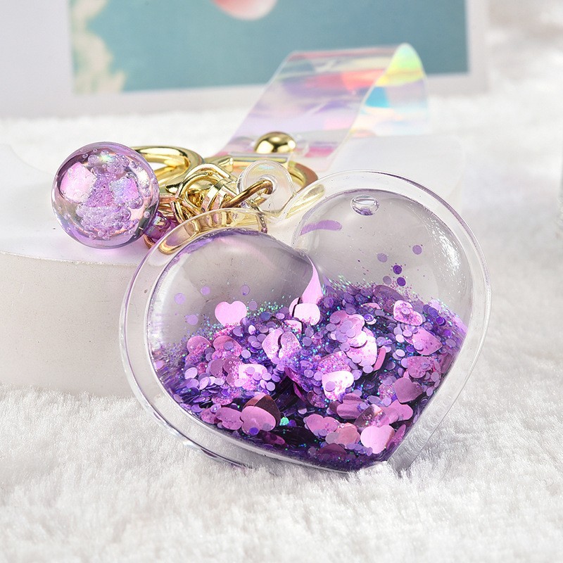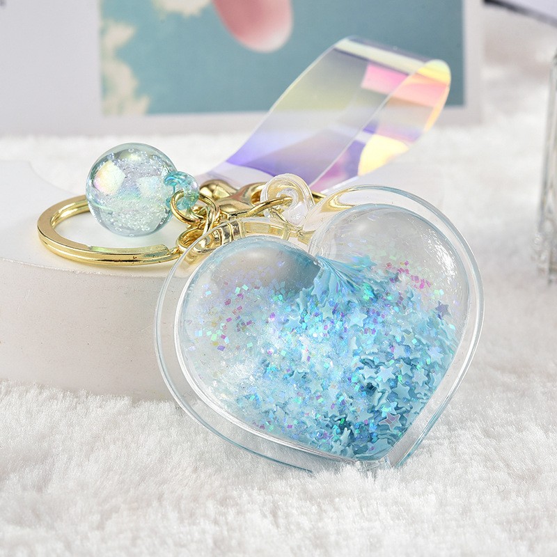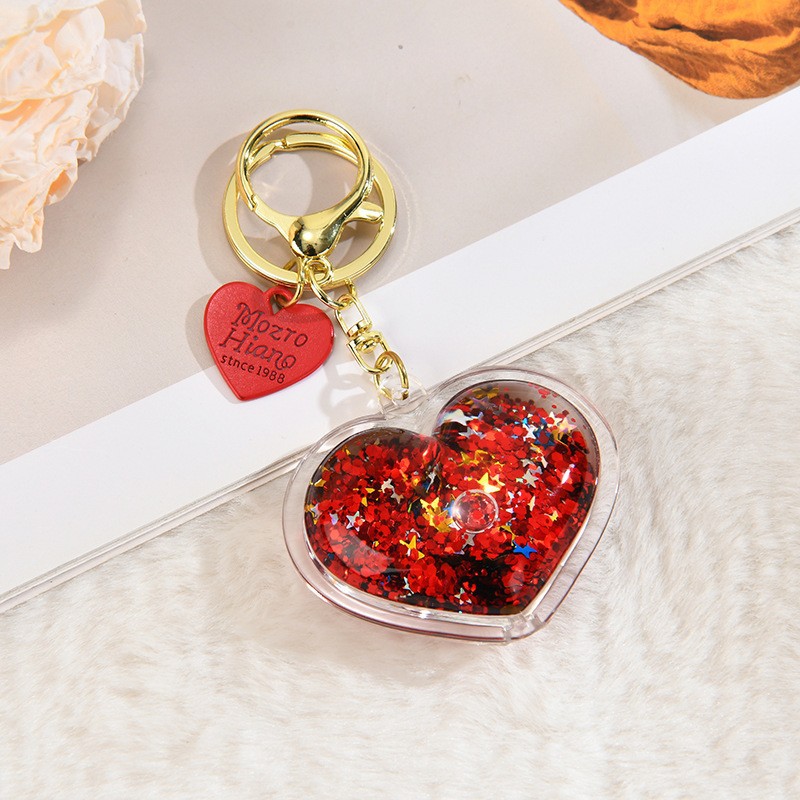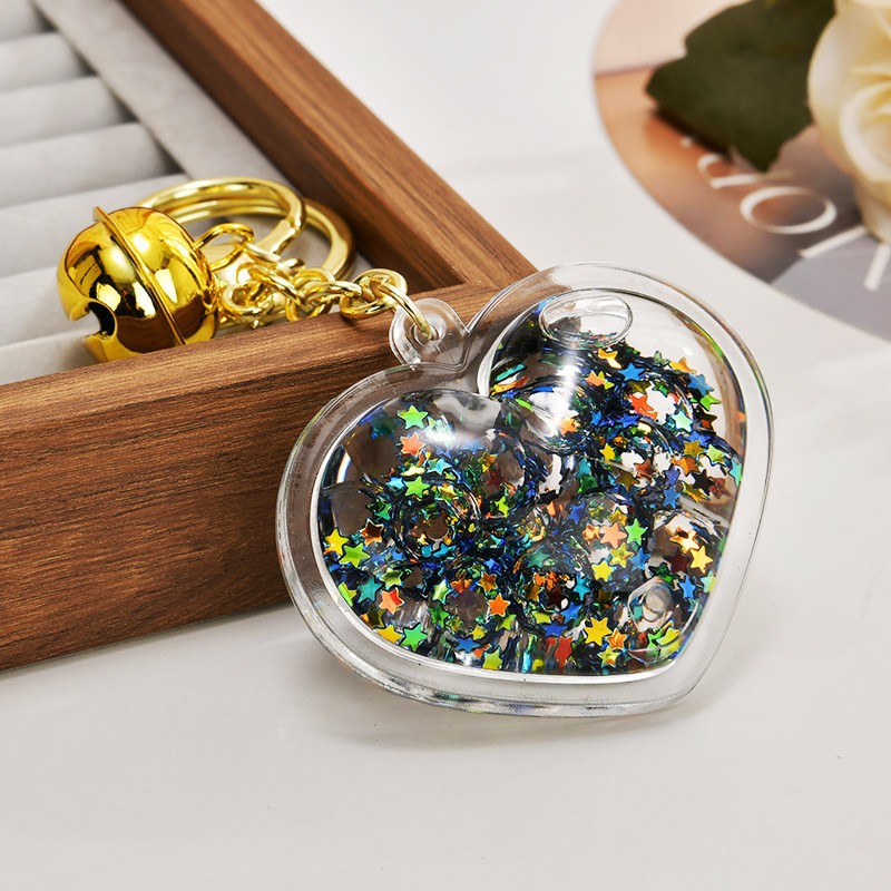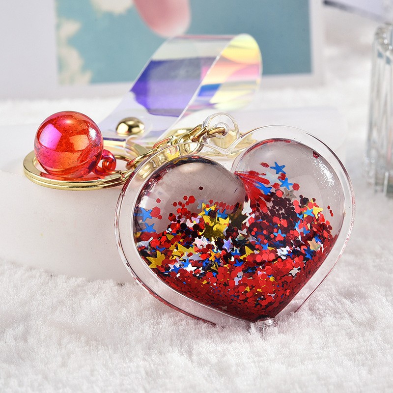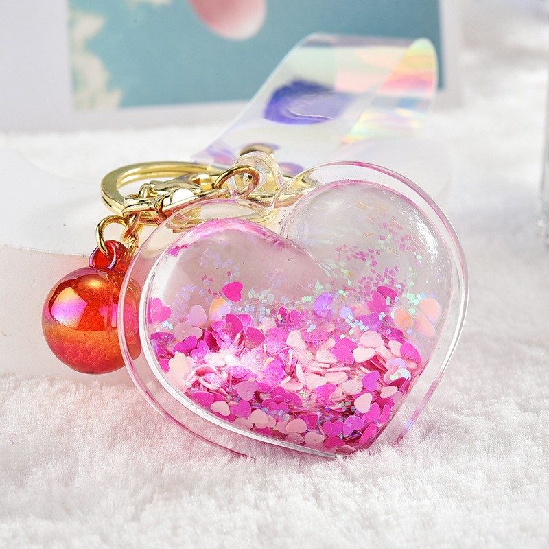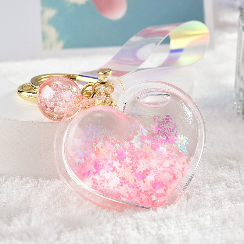 아크릴 오일 주입형 크리에이티브 하트 키체인, 유사액체 펜던트, 오일병 커플 백팩 장식 액세서리, 키체인스토어 가기
