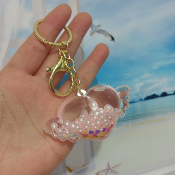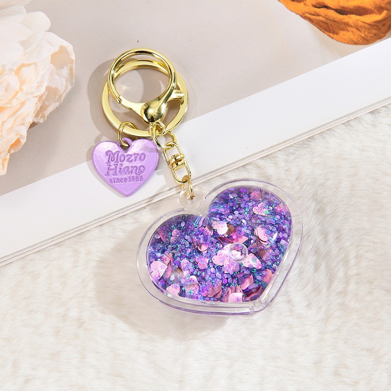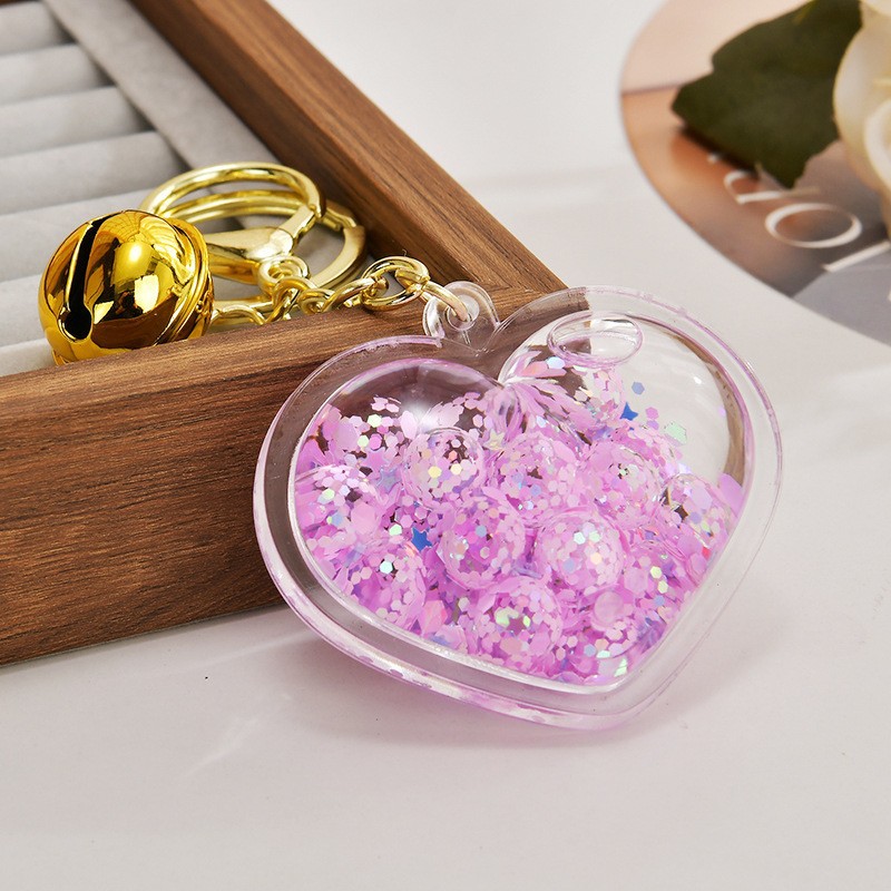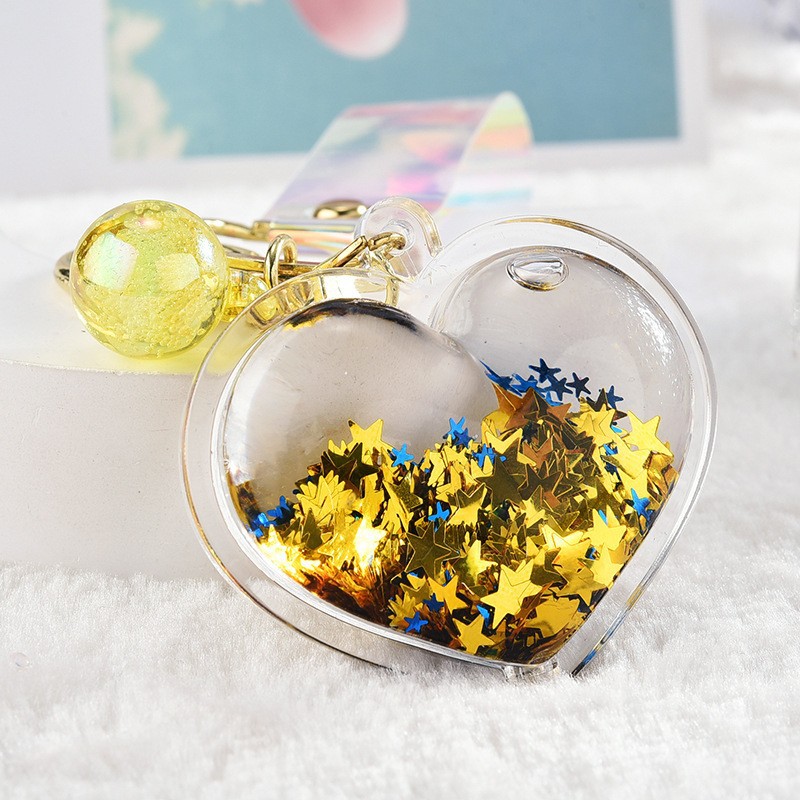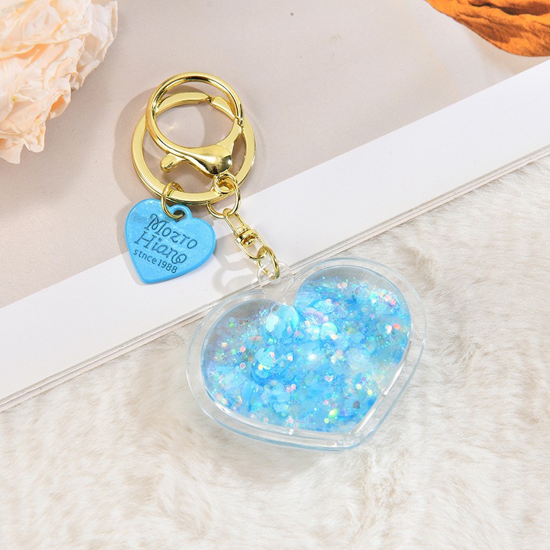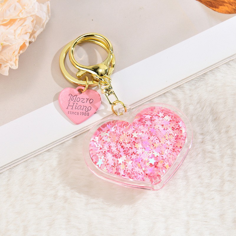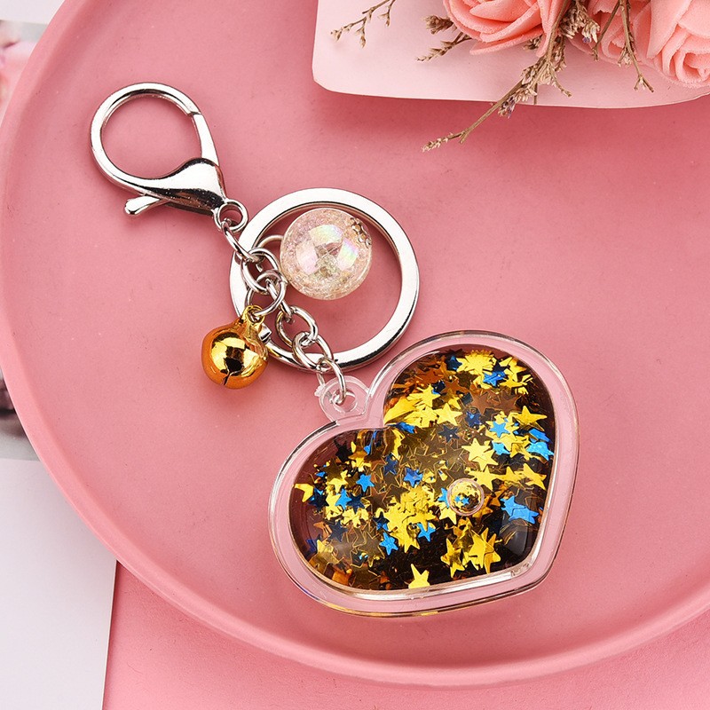 아크릴 오일 주입형 크리에이티브 하트 키체인, 유사액체 펜던트, 오일병 커플 백팩 장식 액세서리, 키체인스토어 가기
