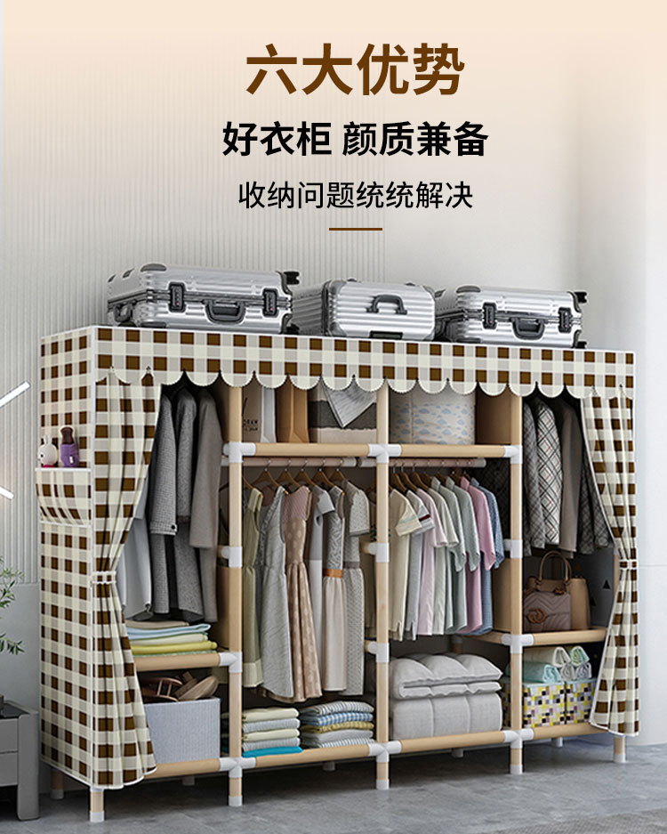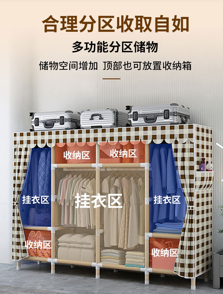 간단한 옷장, 가정용 침실 천 옷장, 임대실, 튼튼하고 내구성이 뛰어난 조립식, 간단하고 현대적인 단단한 나무 옷장