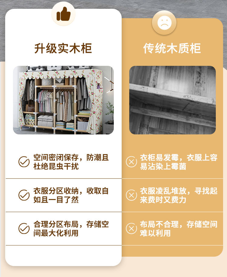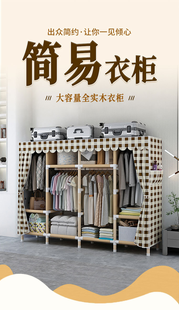 간단한 옷장, 가정용 침실 천 옷장, 임대실, 튼튼하고 내구성이 뛰어난 조립식, 간단하고 현대적인 단단한 나무 옷장스토어 가기