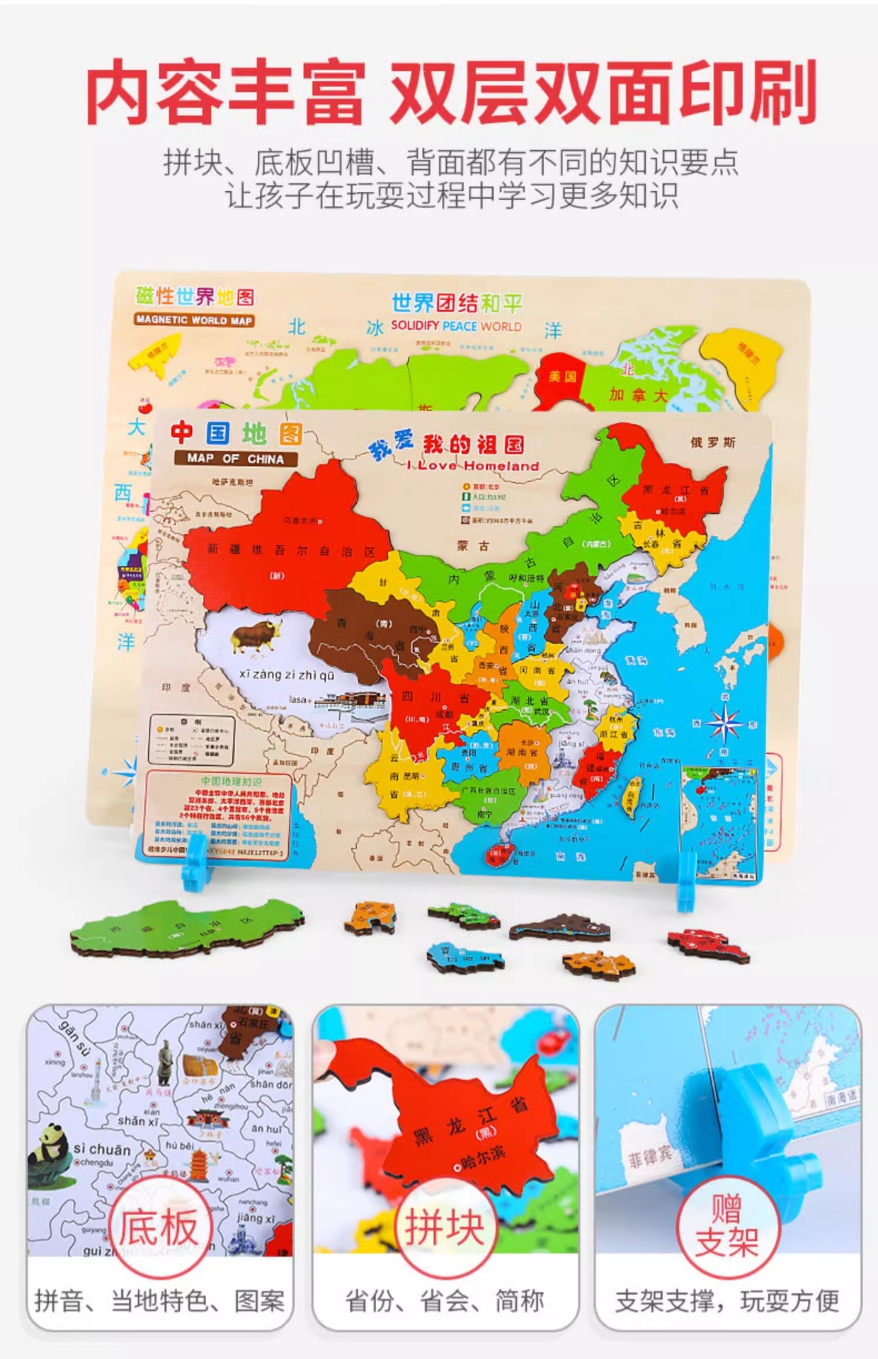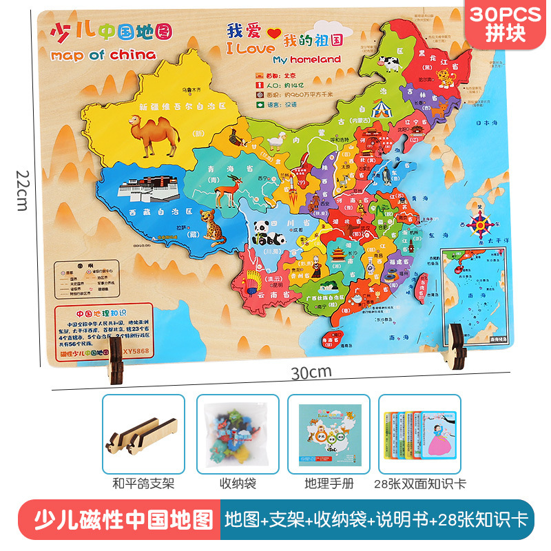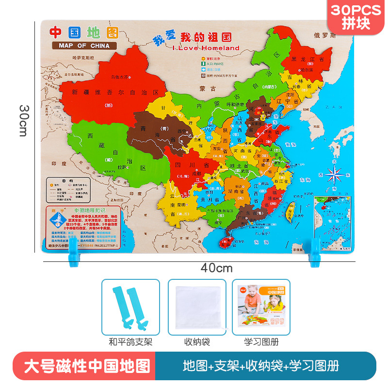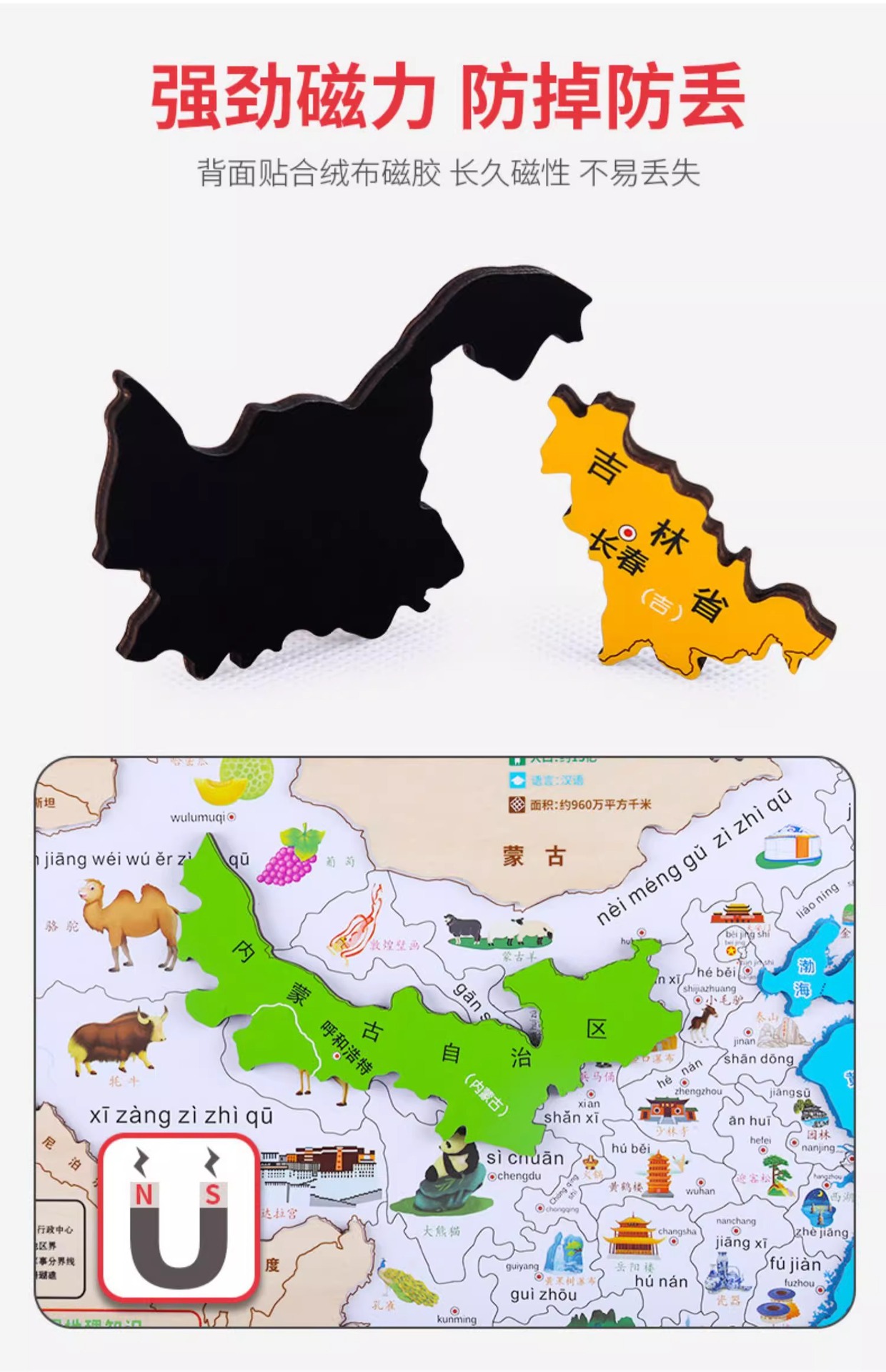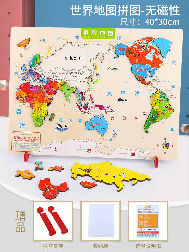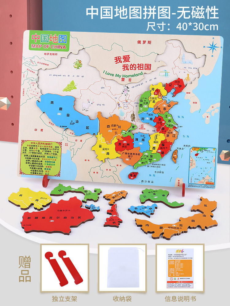 중국지도 퍼즐 나무 자기 세계 대형 두꺼운 자기 평면 조기 교육 어린이 교육 완구 퍼즐스토어 가기