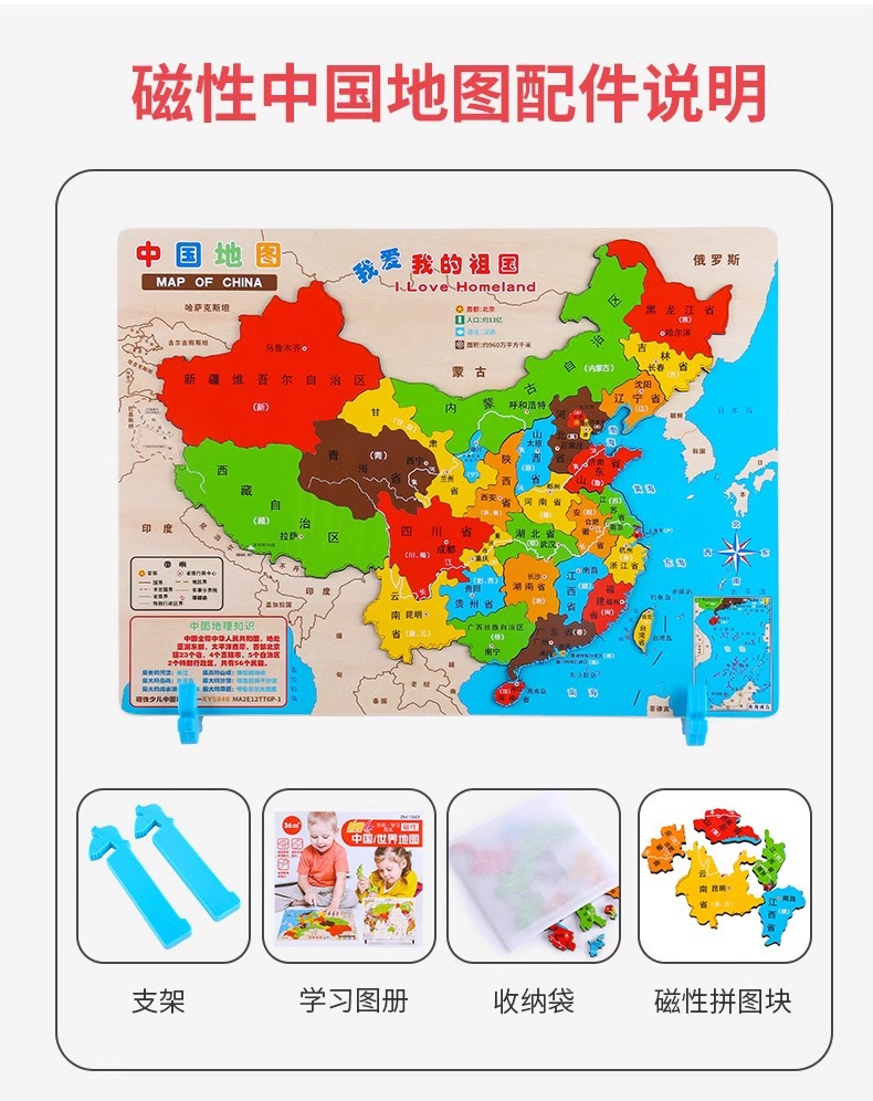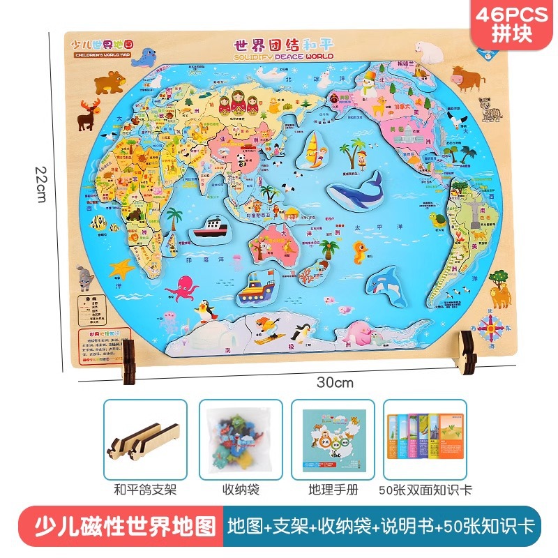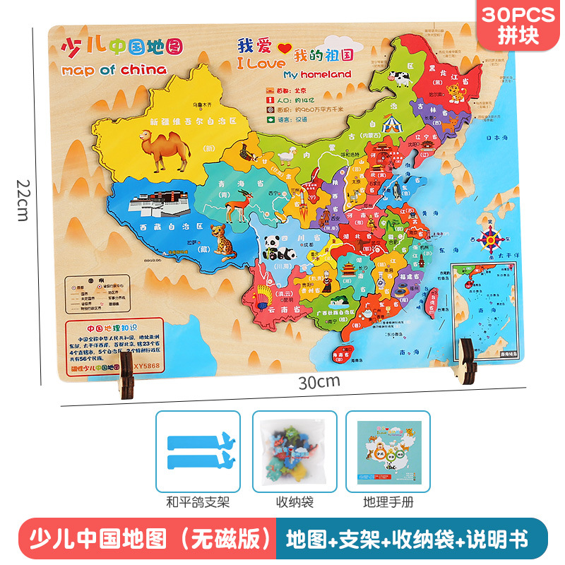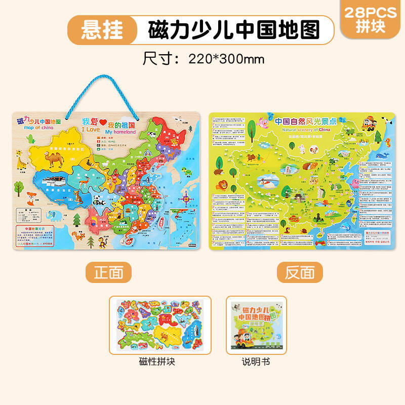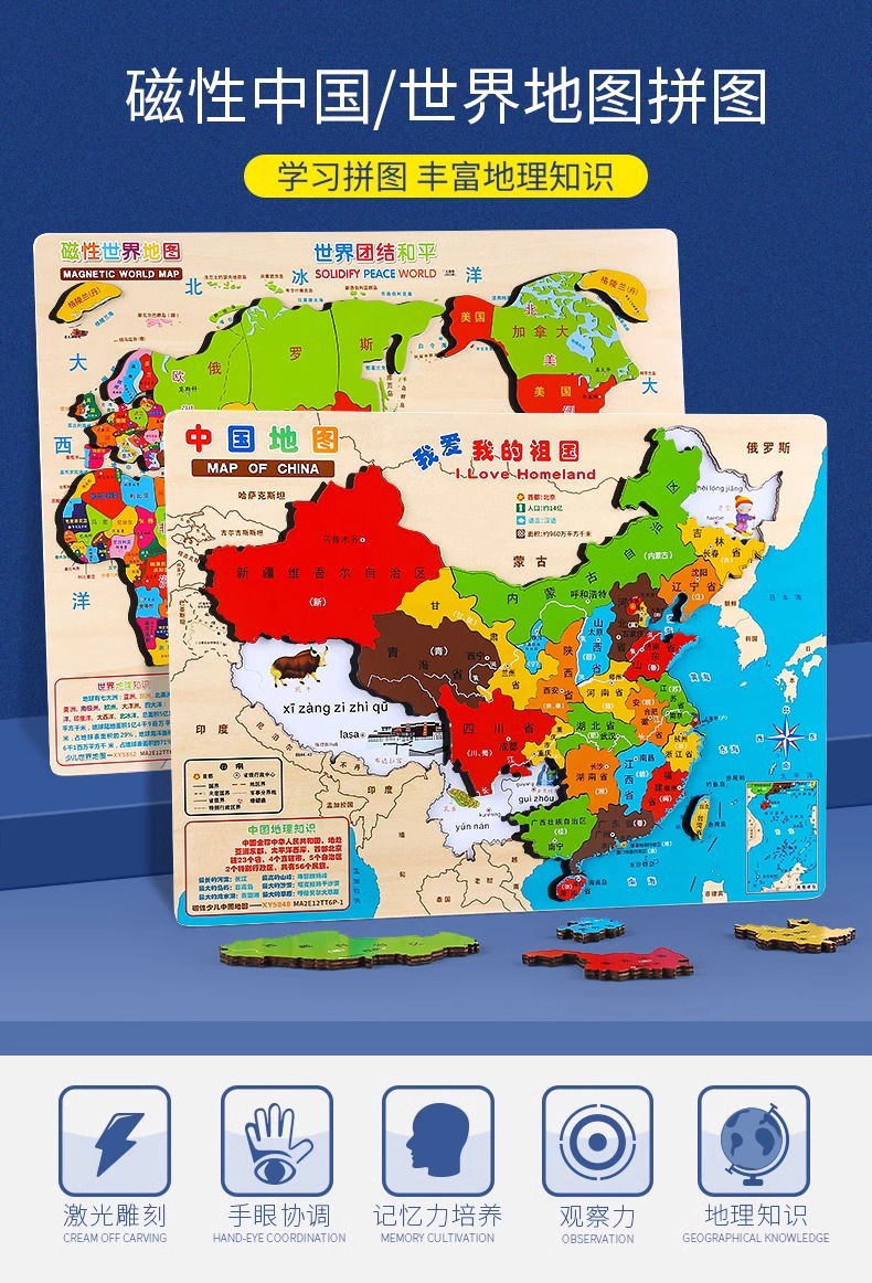 중국지도 퍼즐 나무 자기 세계 대형 두꺼운 자기 평면 조기 교육 어린이 교육 완구 퍼즐스토어 가기