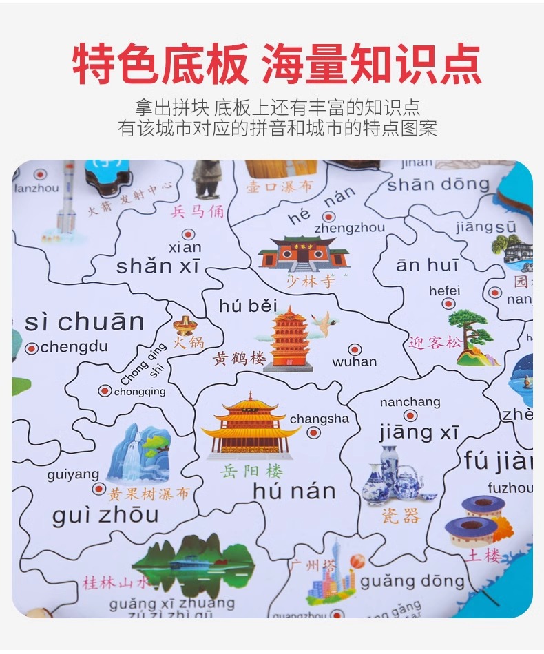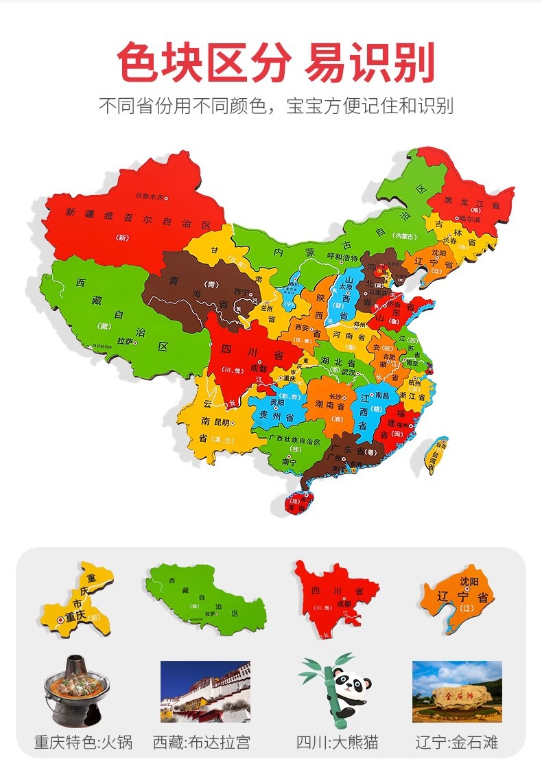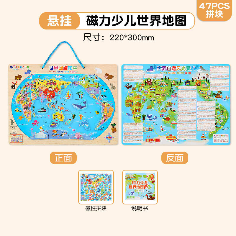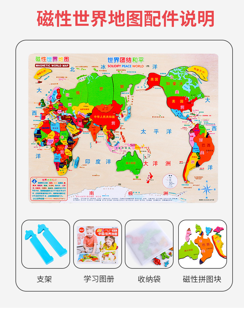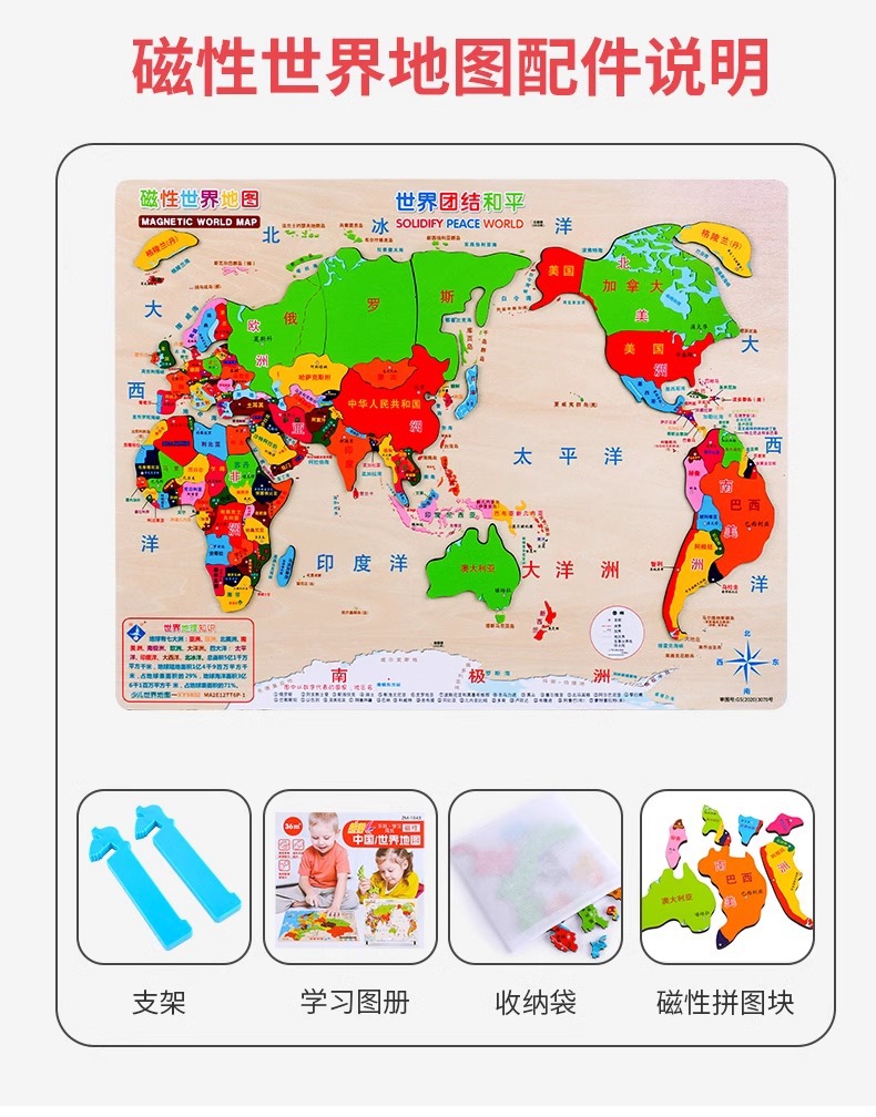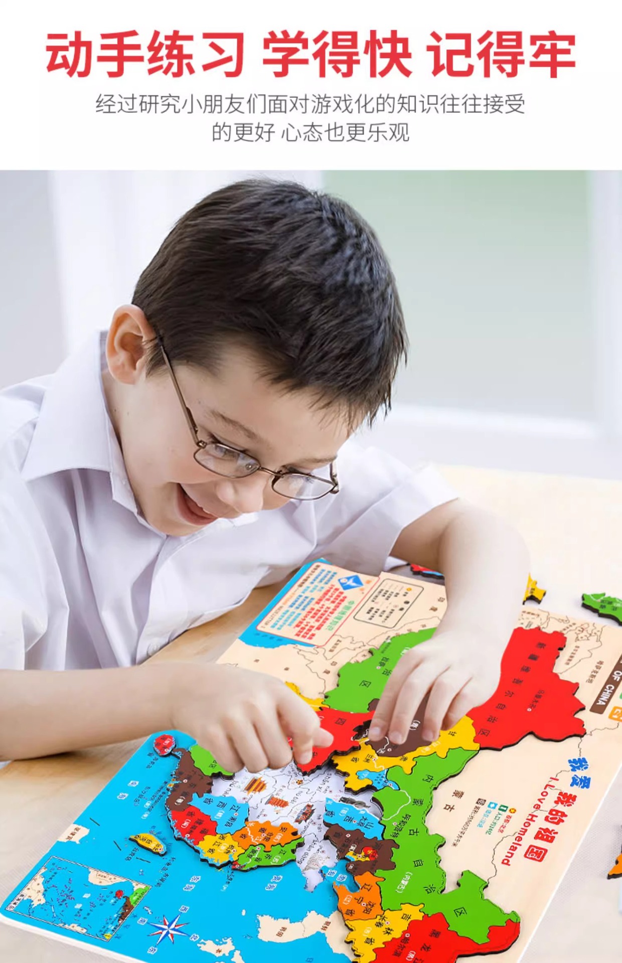 중국지도 퍼즐 나무 자기 세계 대형 두꺼운 자기 평면 조기 교육 어린이 교육 완구 퍼즐스토어 가기