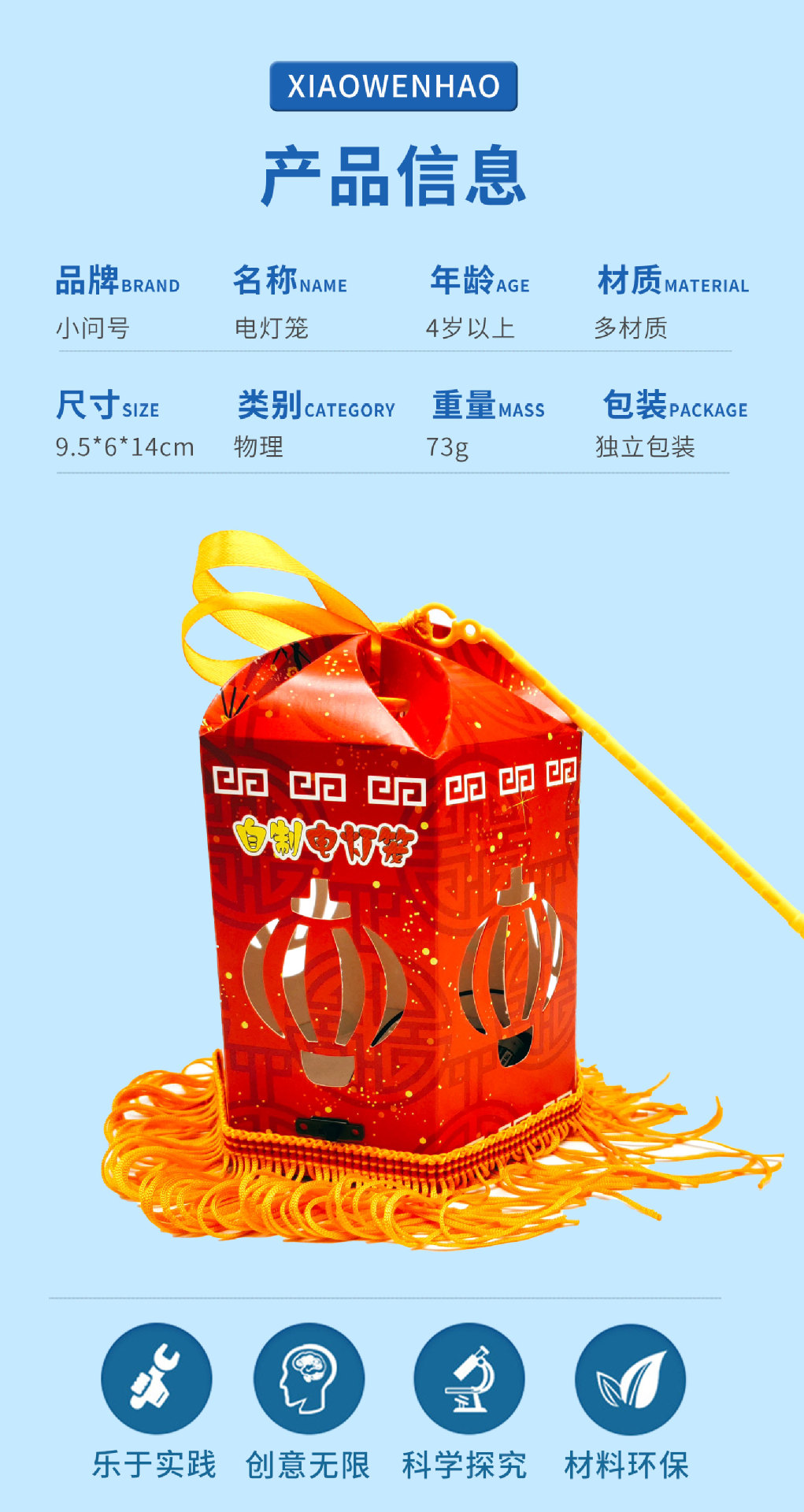 S4 수제 전기 랜턴 초등 및 중등 학교 과학 실험 장비 기술 생산 DIY 어린이 STEAM 교육 보조 작은 물음표