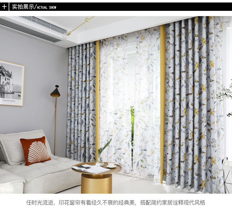 공장 직송 전원풍 새 프린트 암막 커튼 및 창문 스크린, 맞춤 재단 가능, 완제품, 아메리칸 레트로 스타일스토어 가기