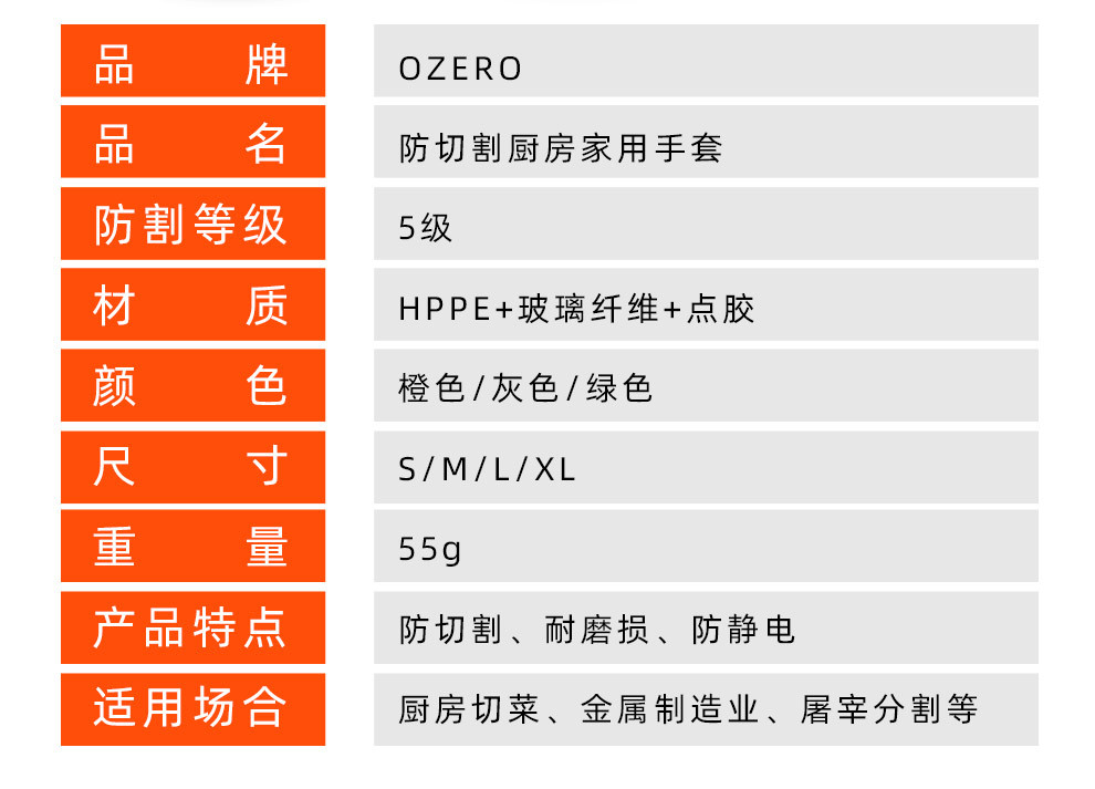 오제 방절단 작업용 장갑, 두리안 껍질 벗기기, 밤 따기 전용 장갑, 물고기 잡기, 채소 자르기, 생선 손질, 주방용 장갑