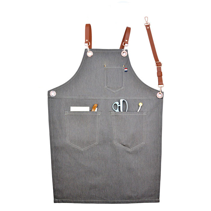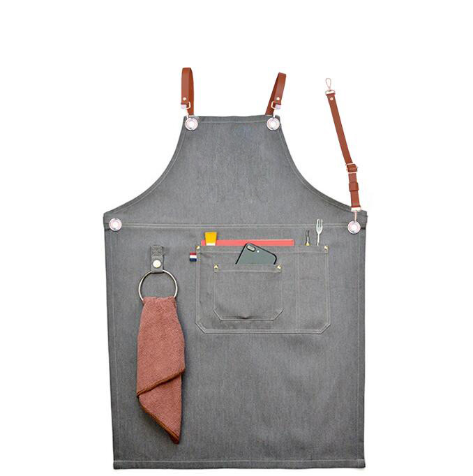 공장 도매 패션 캔버스 데님 앞치마 우유 차 가게 바리 스타 남성과 여성의 작업복 도매 스트랩스토어 가기