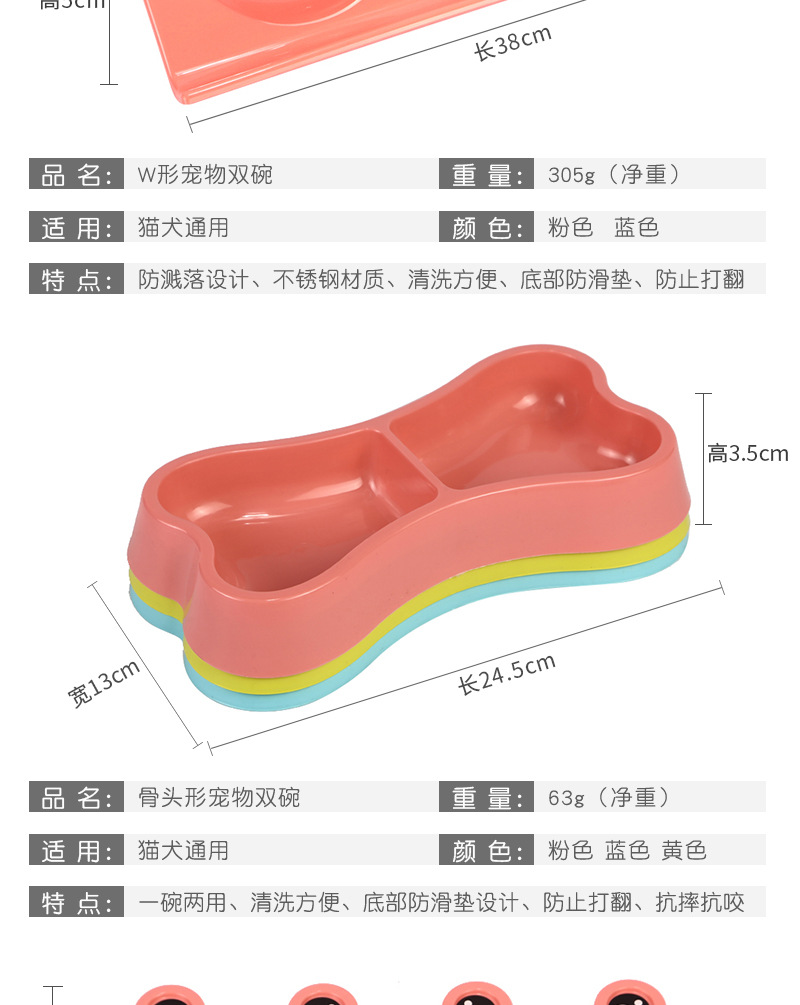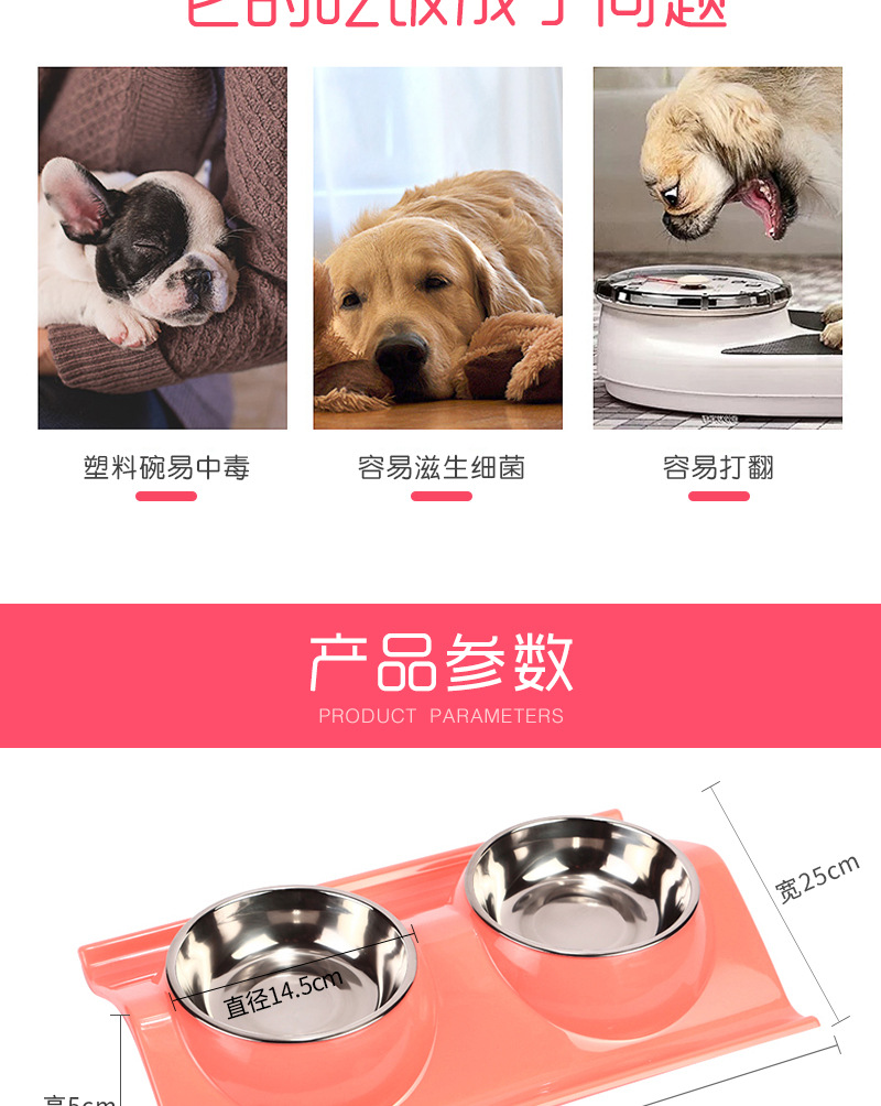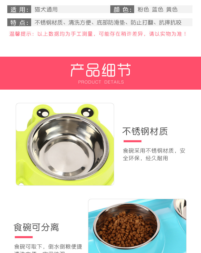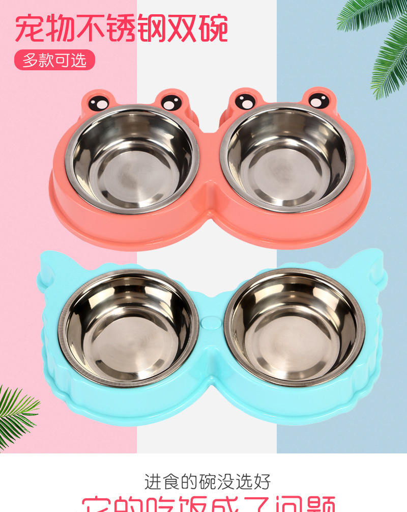 공장 직접 공급 스테인레스 스틸 애완 동물 더블 그릇 피더 플라스틱 만화 개 그릇 고양이 그릇 스팟 도매스토어 가기