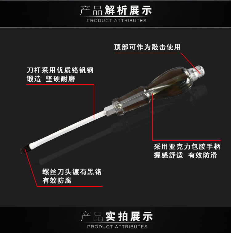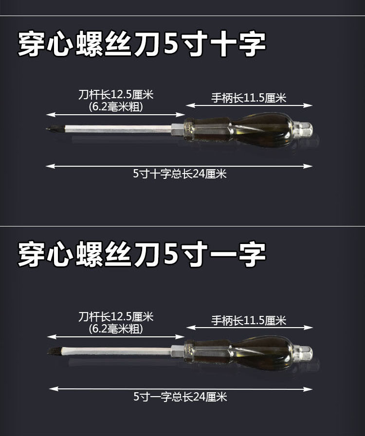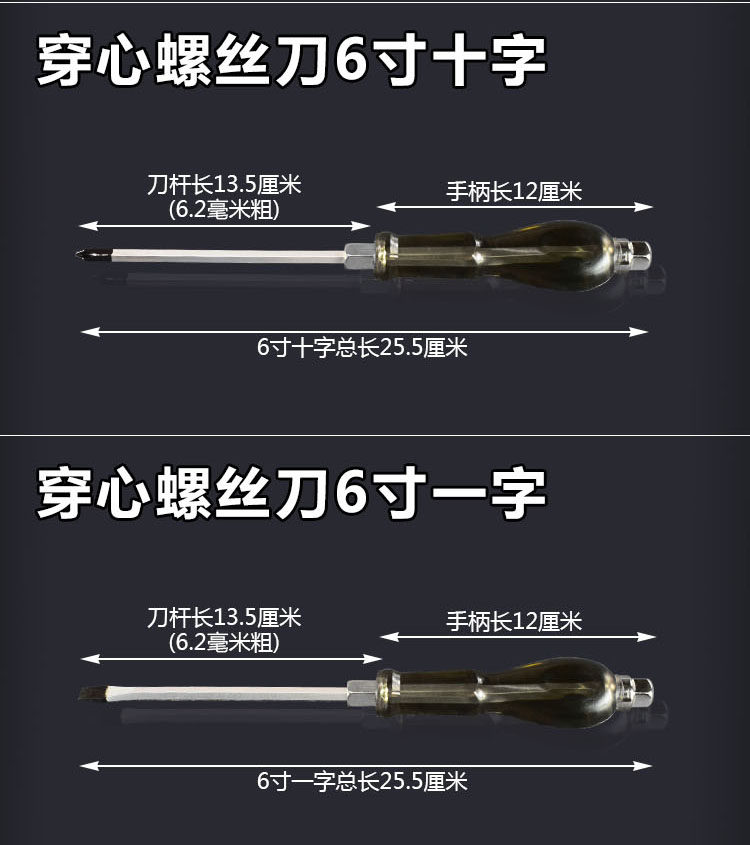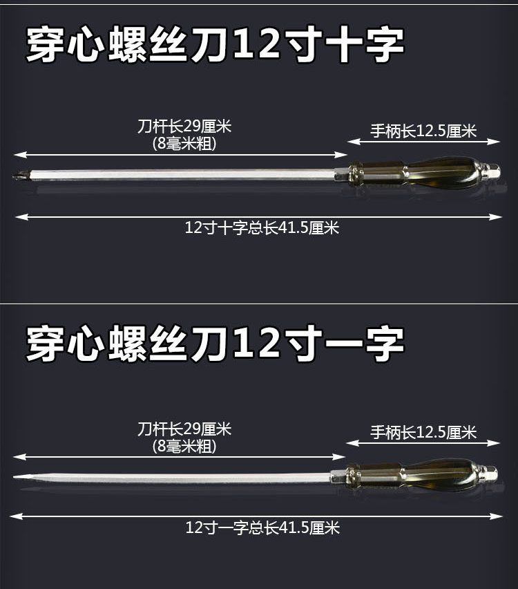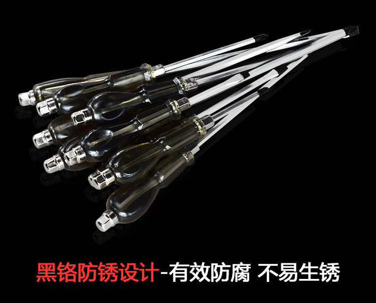 黑穿心螺丝刀,采用铬钒钢制造可敲击,硬度高,有4寸6寸8寸10寸12寸
