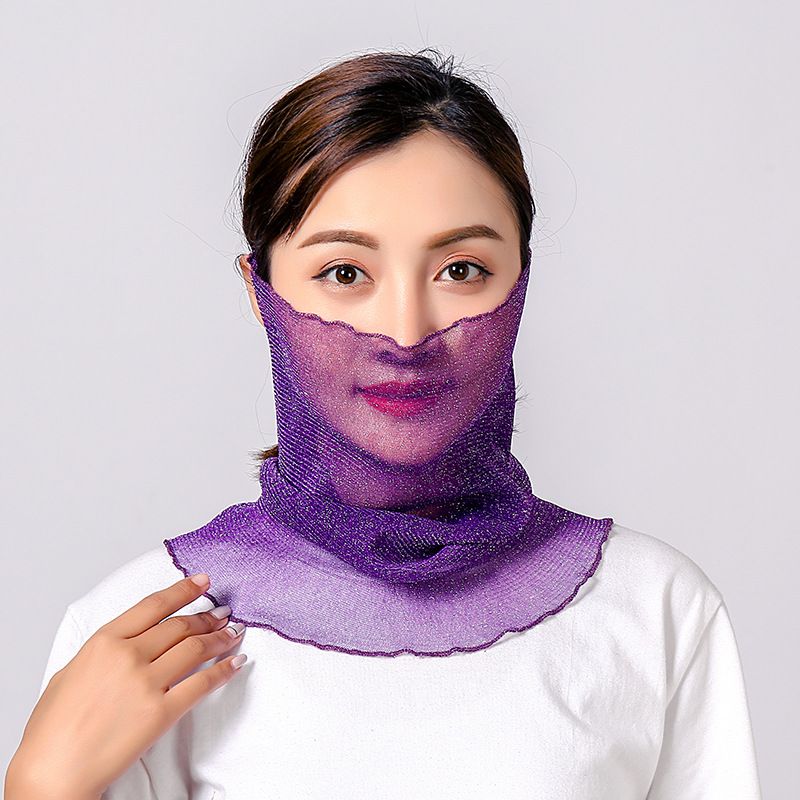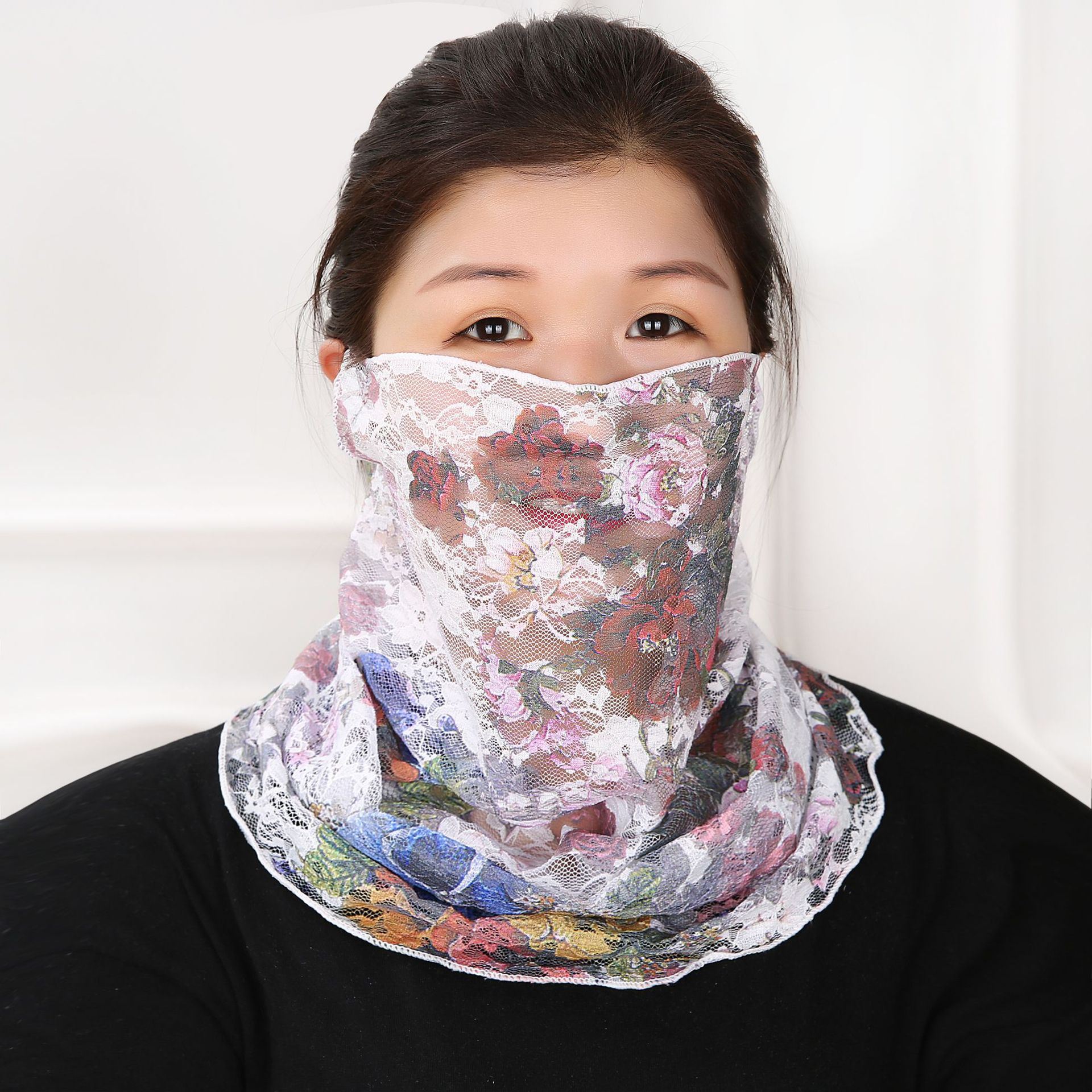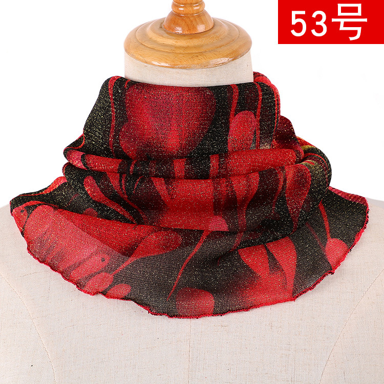 대형 업그레이드 골드 실크 자외선 차단제 목 보호 풀오버 여성용 메쉬 원사 인쇄 스카프 스트레치 원사 페이스 마스크 방풍스토어 가기