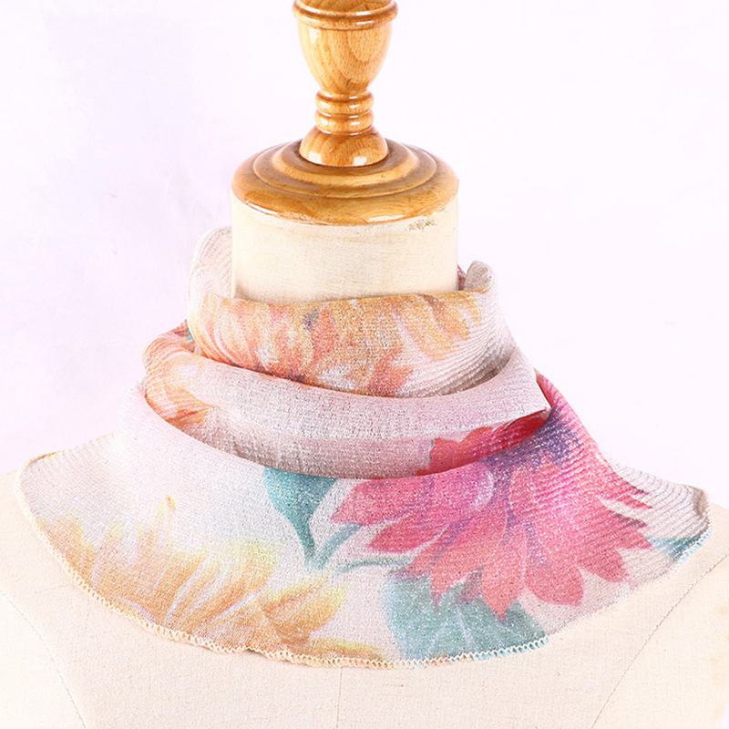 대형 업그레이드 골드 실크 자외선 차단제 목 보호 풀오버 여성용 메쉬 원사 인쇄 스카프 스트레치 원사 페이스 마스크 방풍