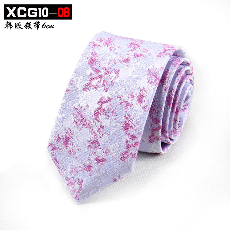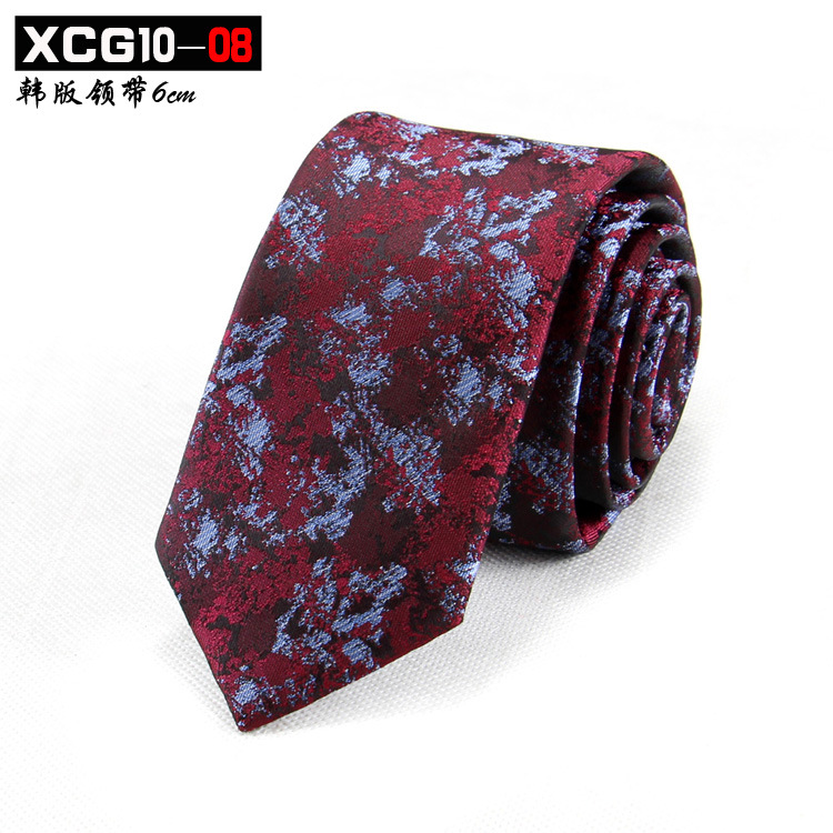 6cm 좁은 남자 넥타이 한국어 스타일 자카드 폴리 에스터 실크 넥타이 남자 패션 맞춤형 패턴 스팟 제조 업체 도매