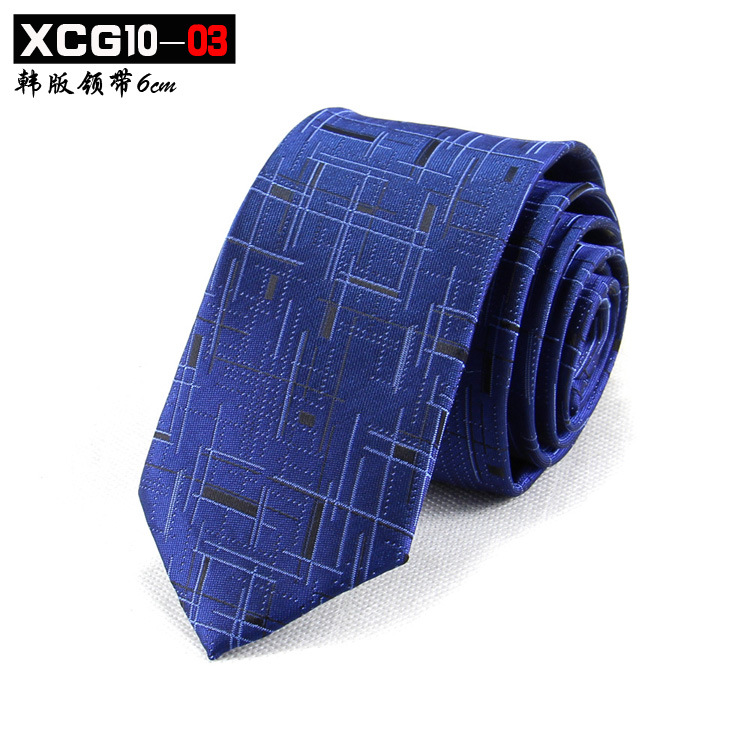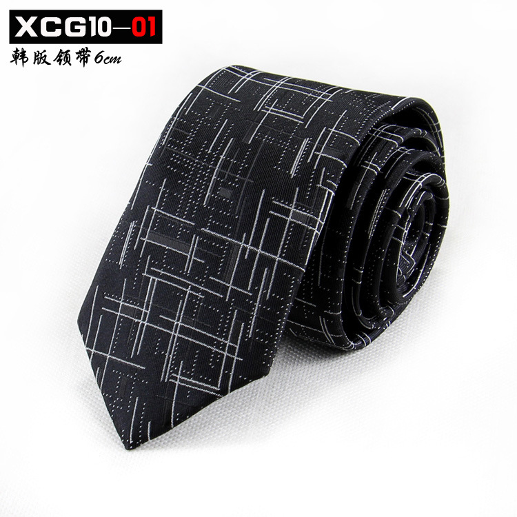 6cm 좁은 남자 넥타이 한국어 스타일 자카드 폴리 에스터 실크 넥타이 남자 패션 맞춤형 패턴 스팟 제조 업체 도매스토어 가기