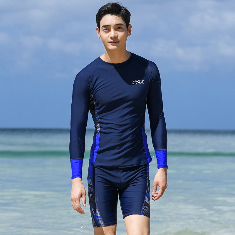 남성용 분리형 수영복, 플랫앵글 대형 사이즈 남성 수영복 세트, 성인용 반팔 상의, 5부 수영 팬츠, 다이빙복스토어 가기