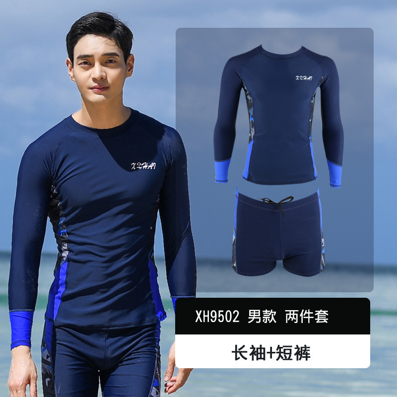 남성용 분리형 수영복, 플랫앵글 대형 사이즈 남성 수영복 세트, 성인용 반팔 상의, 5부 수영 팬츠, 다이빙복