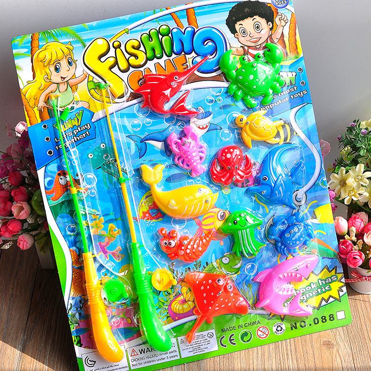 여름 낚시 장난감 더블 폴 마그네틱 어린이 낚시 장난감 세트 물 장난감 2 낚싯대 재료 제작스토어 가기
