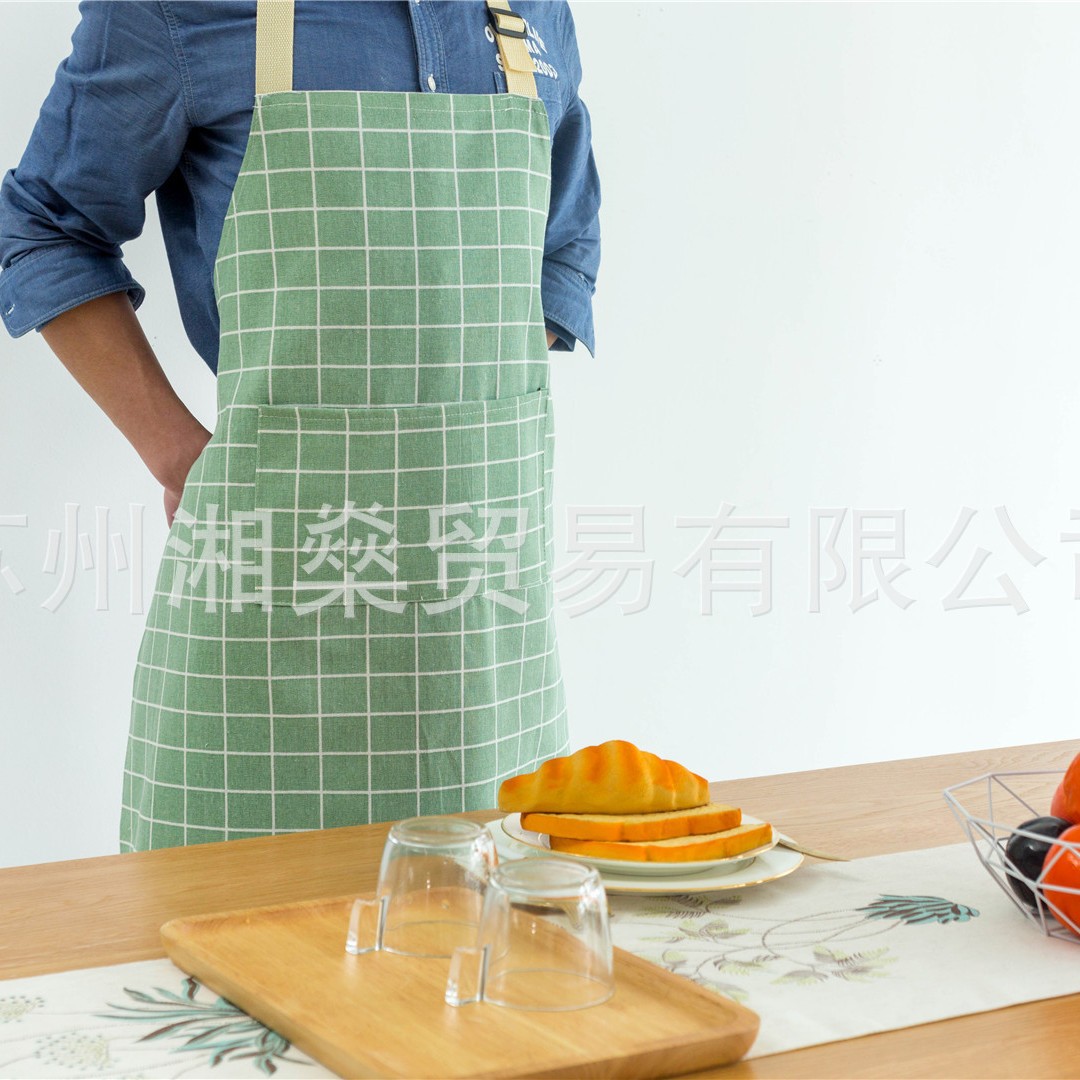 2021 신제품 북유럽 스타일 면직물 앞치마 내유성 청소 주방 가정 작업복 반 길이 앞치마스토어 가기