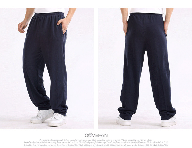 봄과 여름 얇은 탄성 허리 스포츠 바지 남자의 느슨한 스트레이트 코튼 캐주얼 긴 바지 남자의 플러스 사이즈 뚱뚱한 바지