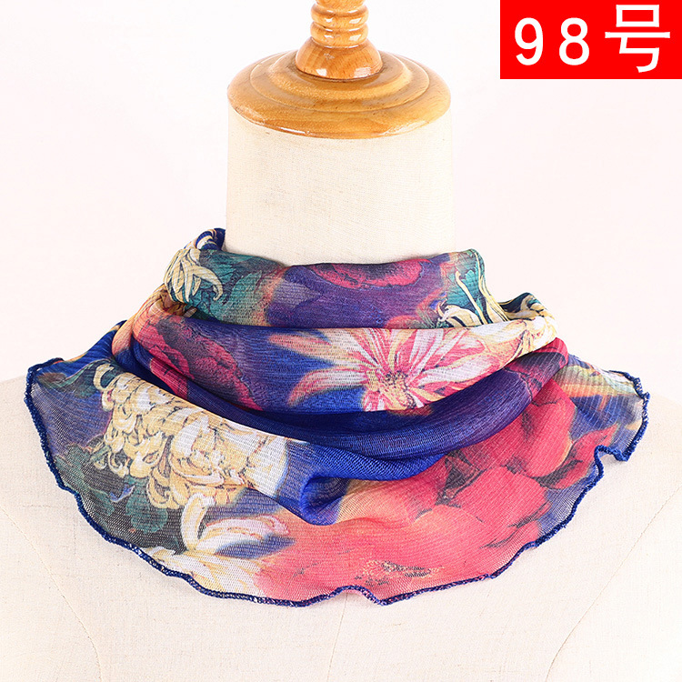 골드 실크 인쇄 목 보호 스카프가있는 새로운 초대형 스트레치 마스크 여성용 다기능 차양 자외선 차단제 목 보호