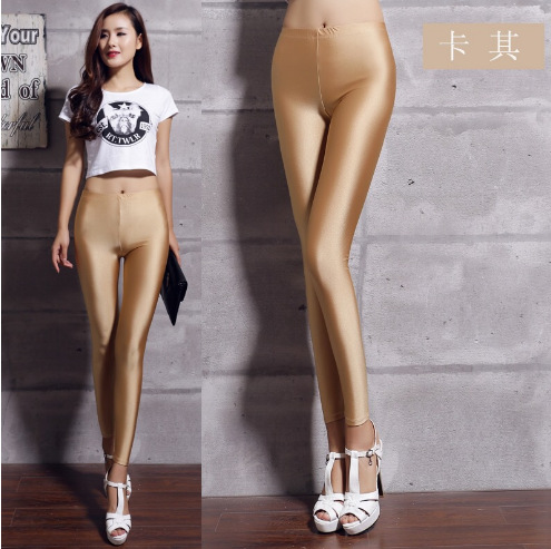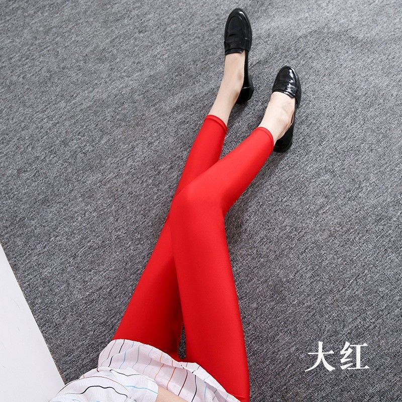 봄 여름 광택 9부 팬츠 신형 형광팬츠 한국판 플러스 사이즈 레깅스 슬림핏 여성용 슬림핏 팬츠