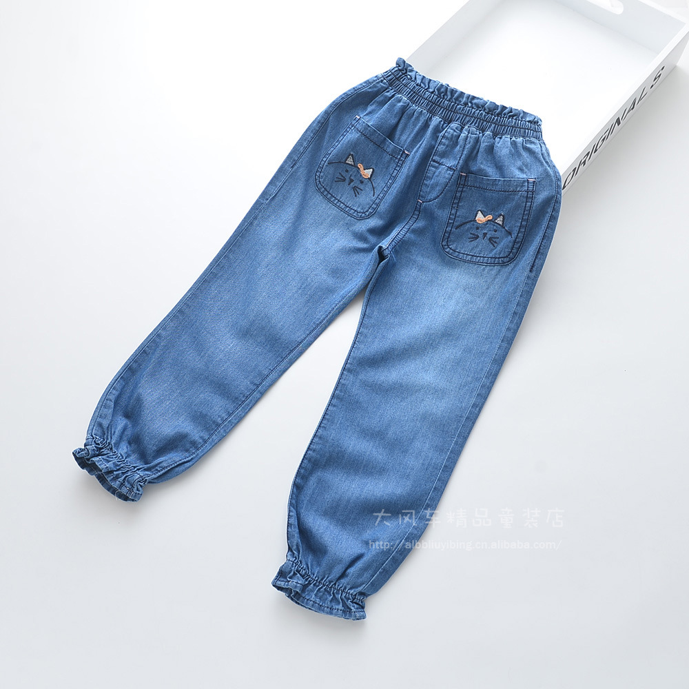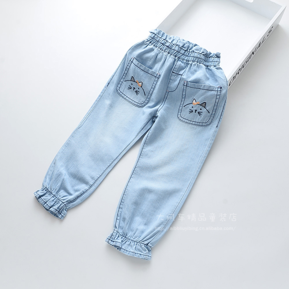 2019春季新款 猫咪刺绣女童牛仔长裤