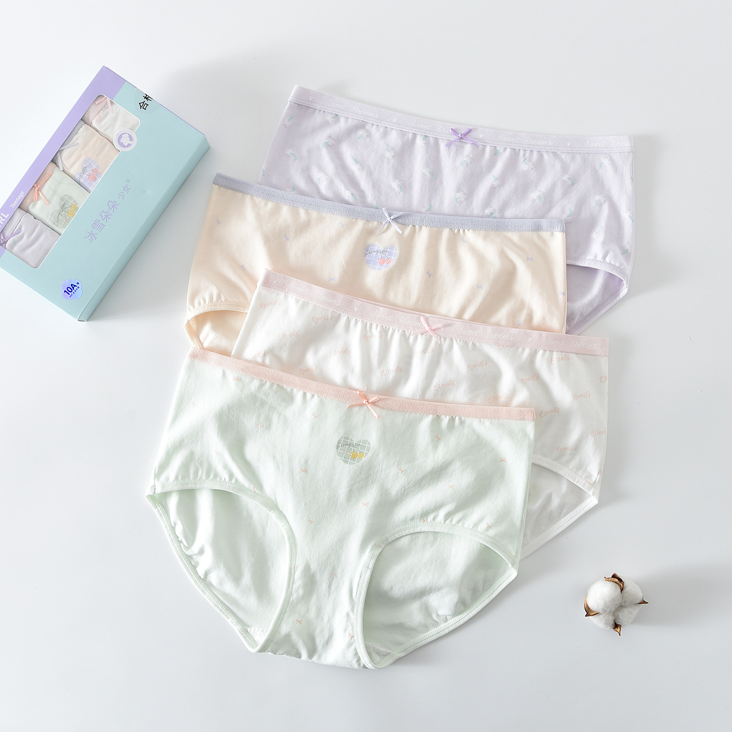 冰雪朵朵四条装 儿童少女内裤女童三角裤盒装大童150-170内裤短裤
