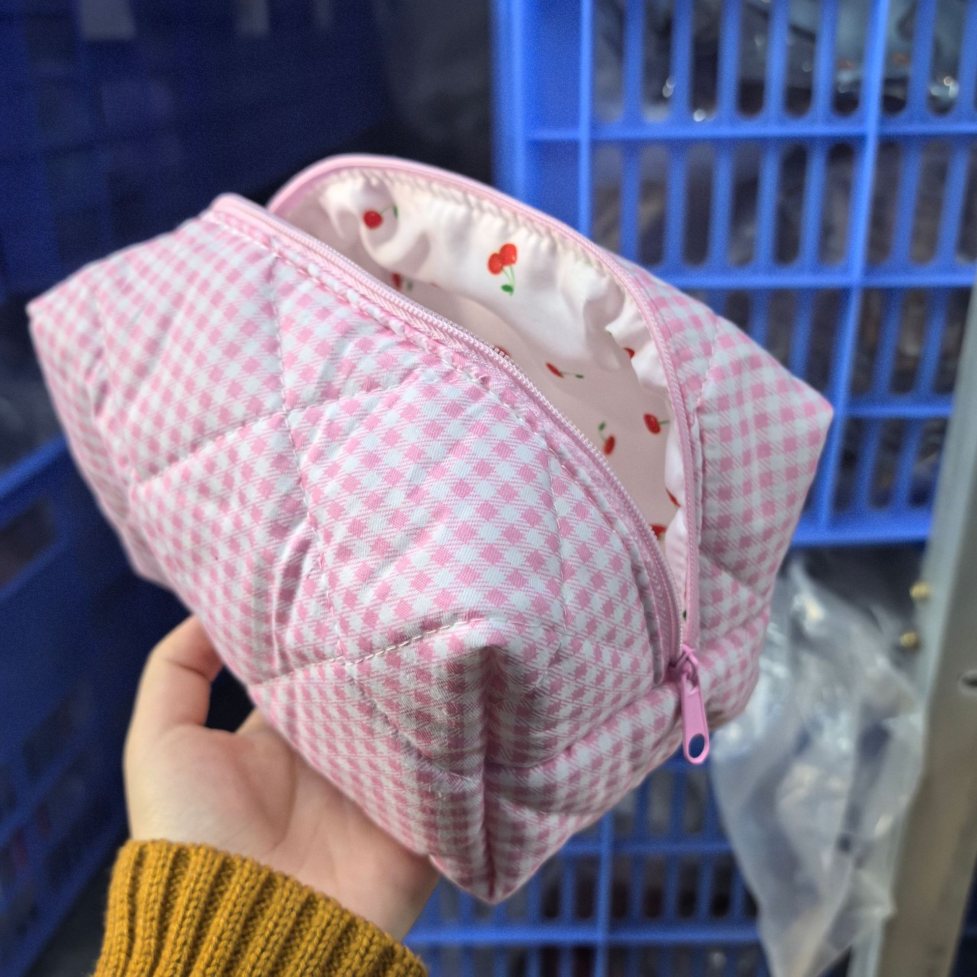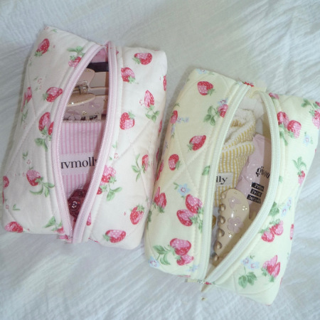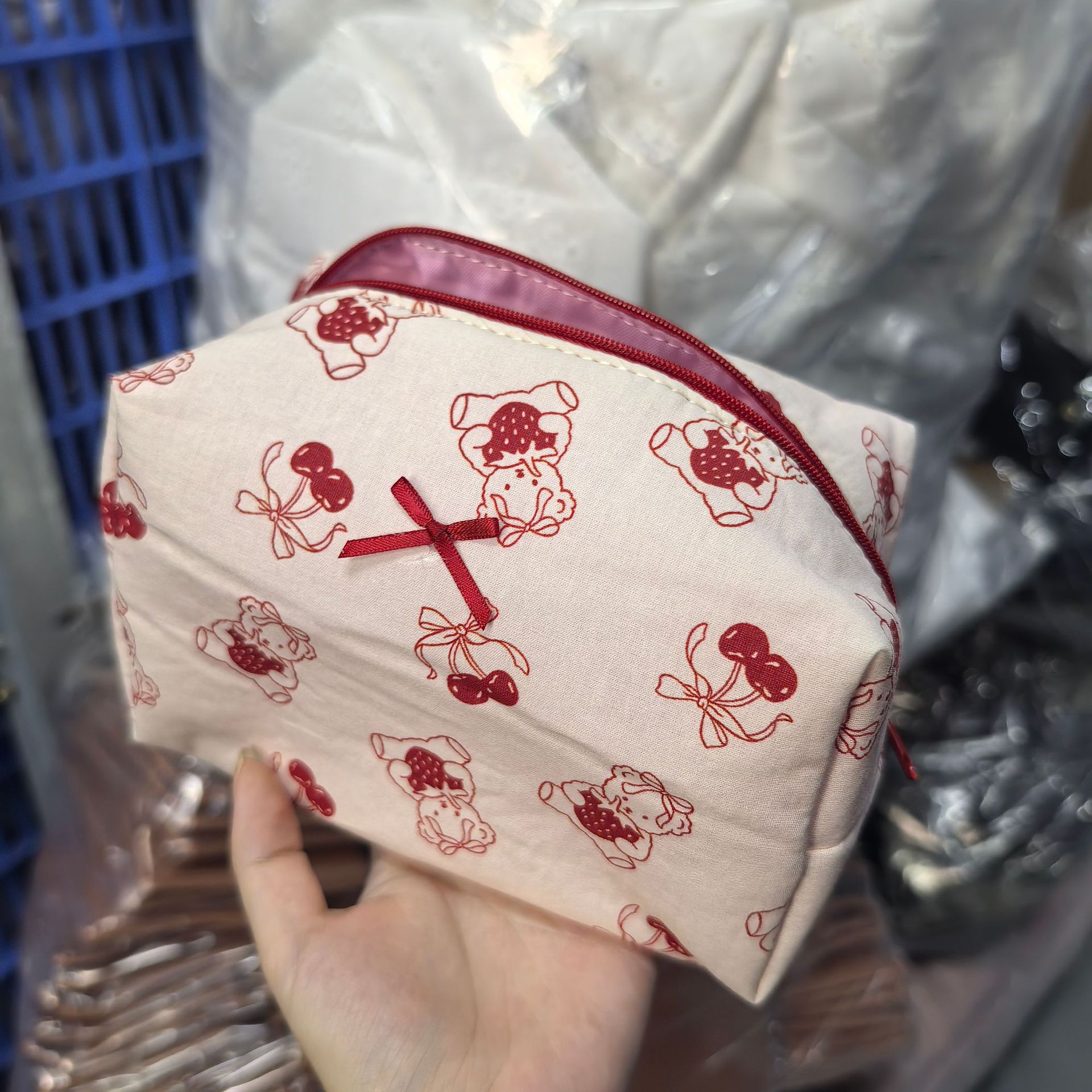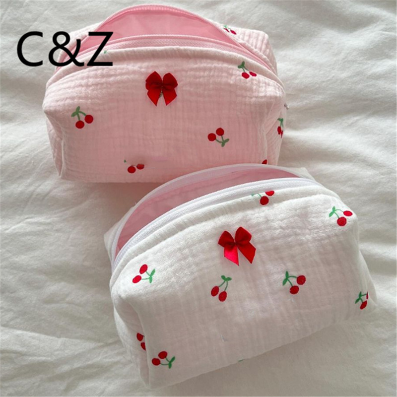 버블 코튼 체리 인쇄 화장품 가방 귀여운 대용량 꽃 세척 가방 휴대용 스킨 케어 보관 가방