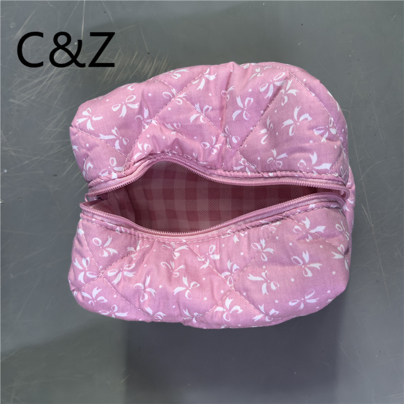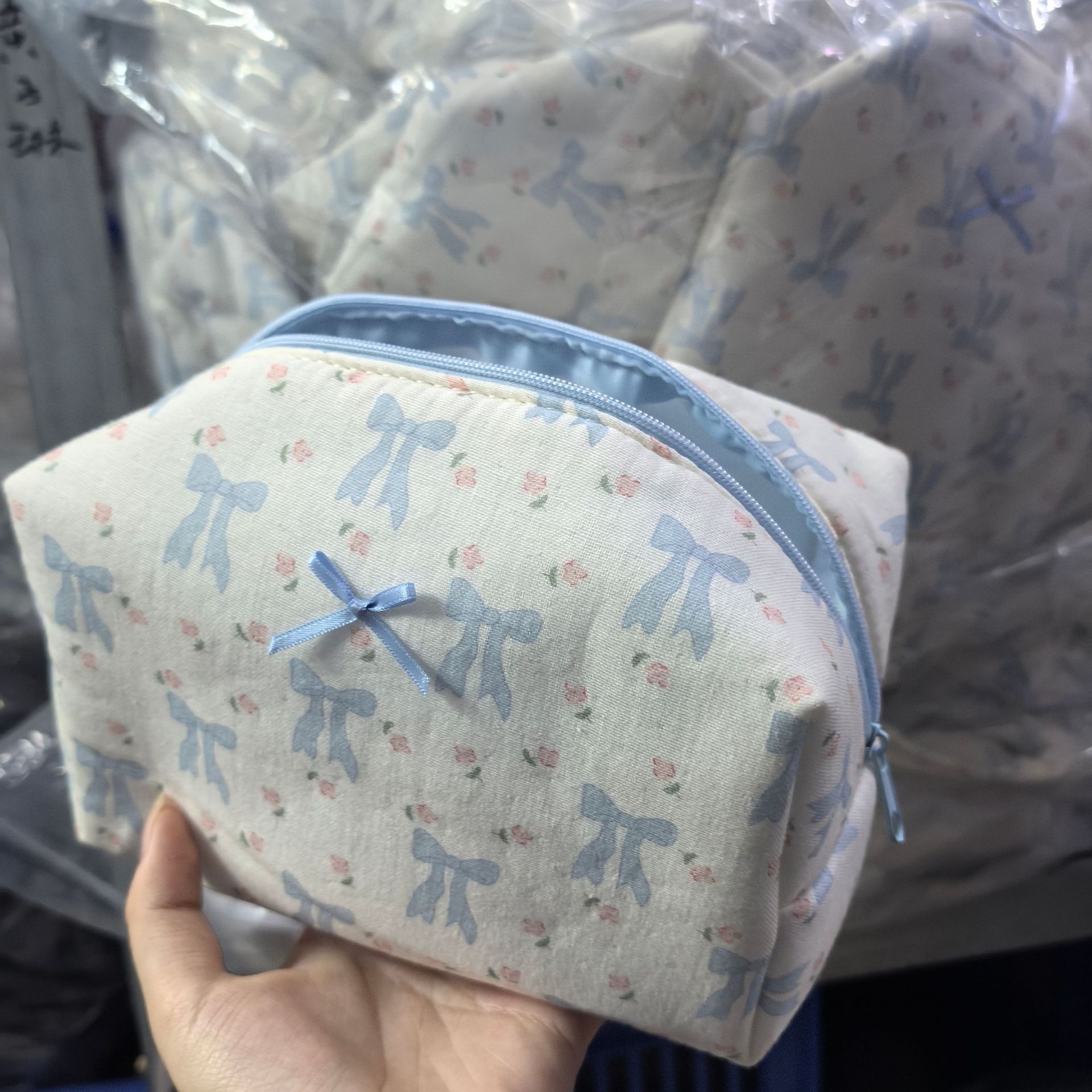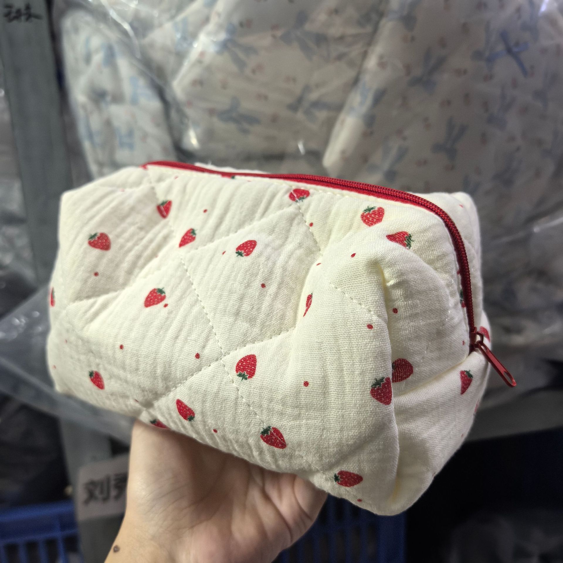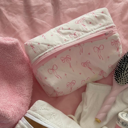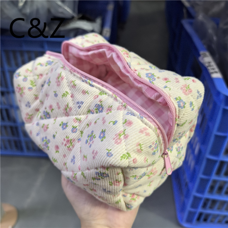 버블 코튼 체리 인쇄 화장품 가방 귀여운 대용량 꽃 세척 가방 휴대용 스킨 케어 보관 가방