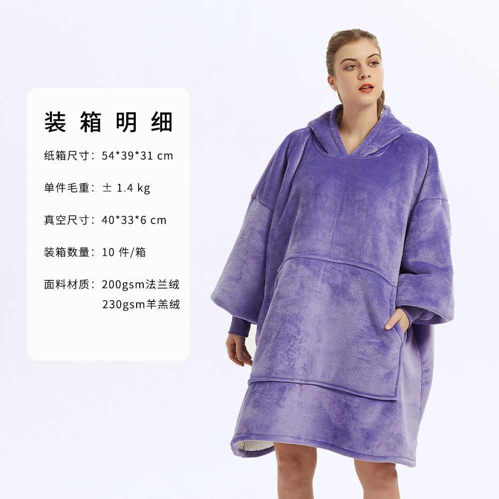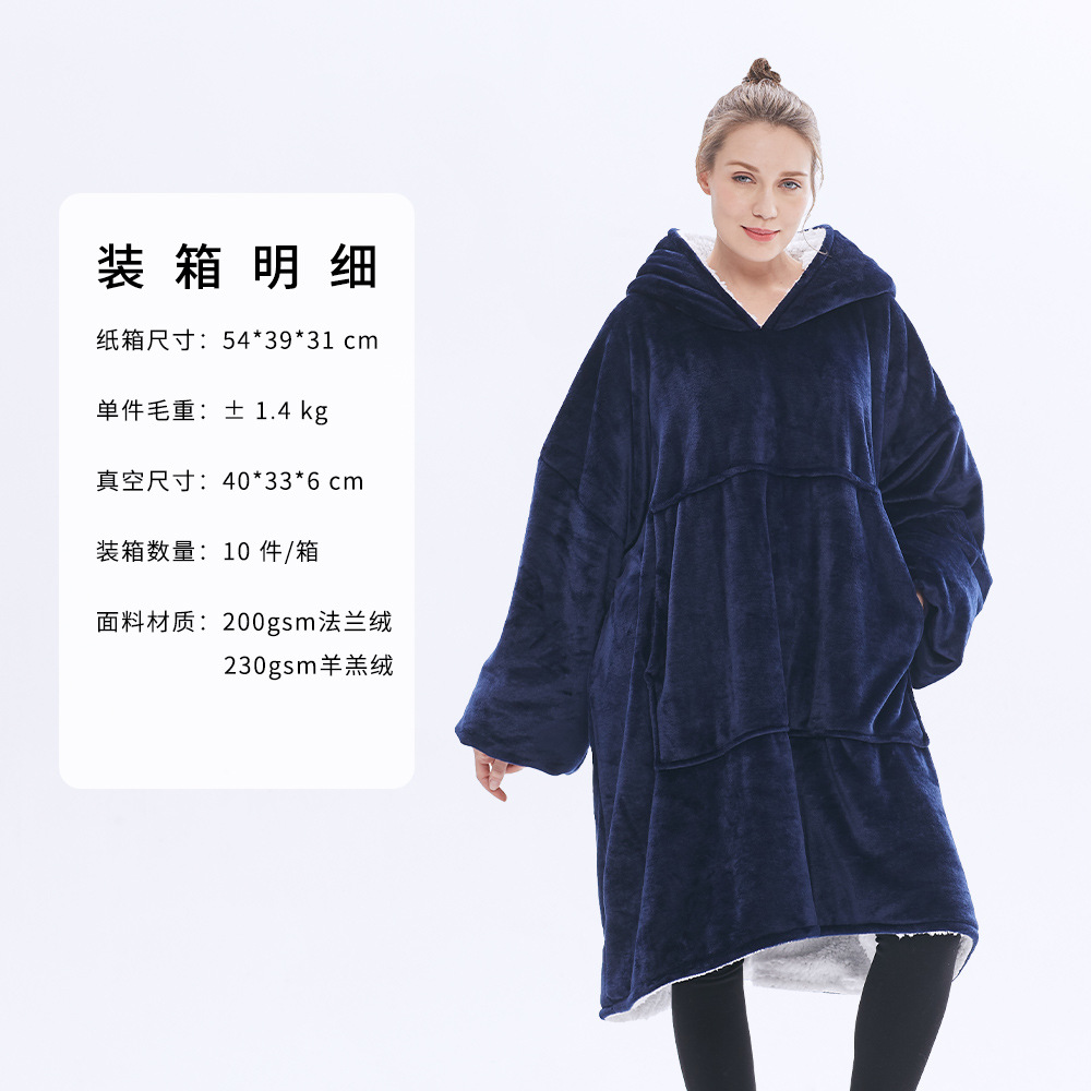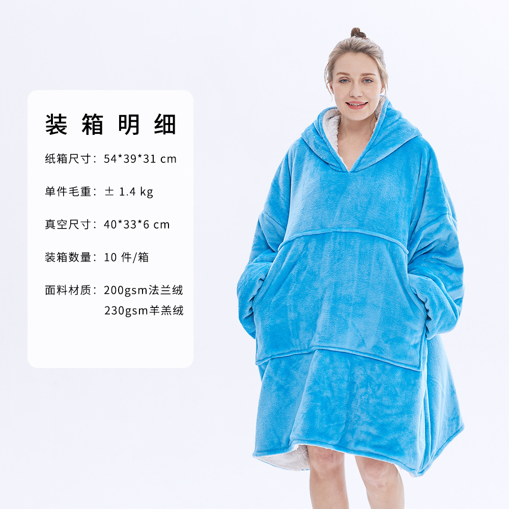 후드 게으른 담요 풀오버 크로스 보더 더블 레이어 TV 스웨터 여성의 가을과 겨울 방한 따뜻한 잠옷 TV 담요 아마존