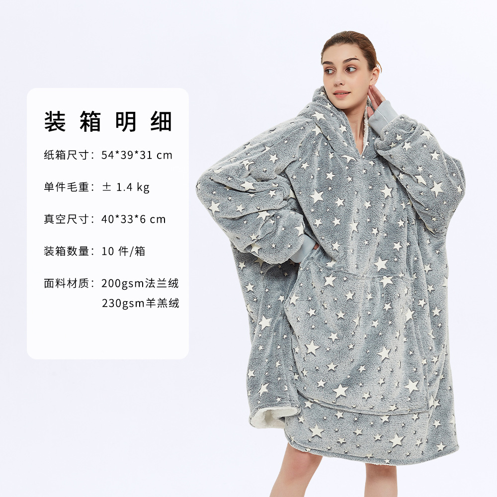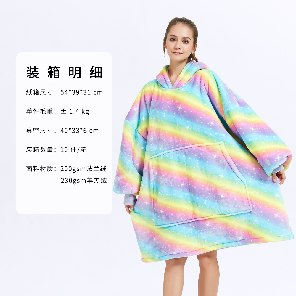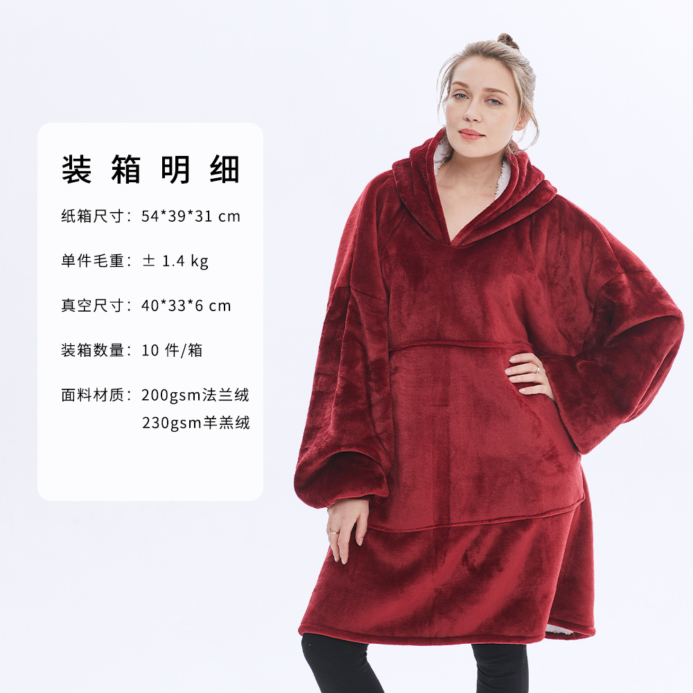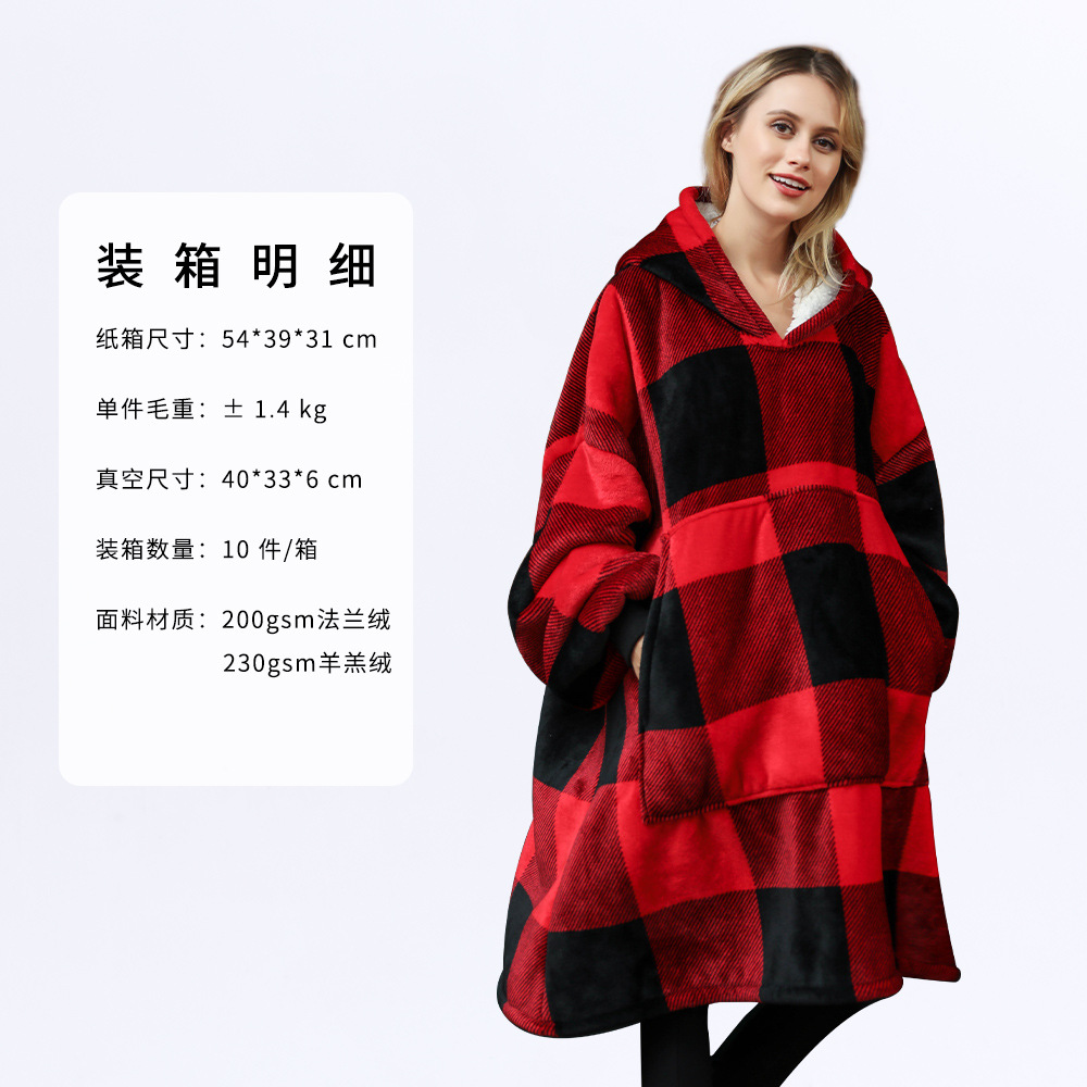 후드 게으른 담요 풀오버 크로스 보더 더블 레이어 TV 스웨터 여성의 가을과 겨울 방한 따뜻한 잠옷 TV 담요 아마존