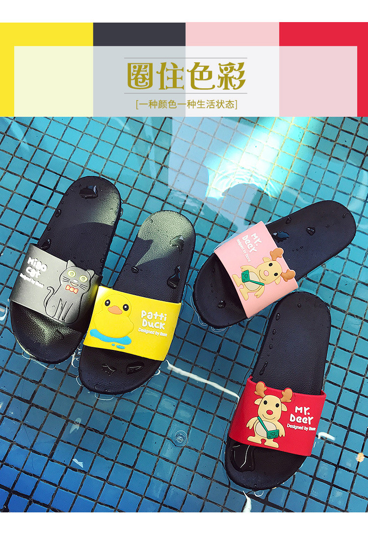 홈 슬리퍼 여름 여성 실내 홈 미끄럼 방지 목욕 부드러운 바닥 만화 가족 세 어린이 샌들과 남성용 슬리퍼