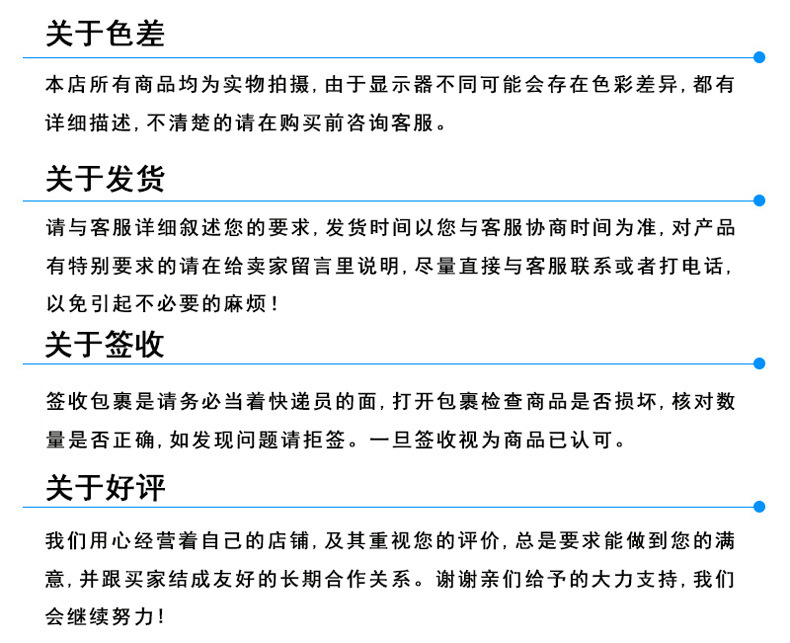 本厂产品材料规格基本是按客户要求定做的,加上原材料价格会有浮动,所以成品价格会有不同。展示的产品只是列举了一些样品,订货前请务必咨询我们旺旺客服修改价格,或者直接致电我们!