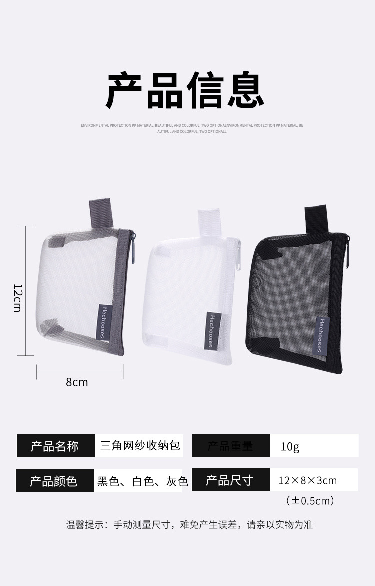 간단한 나일론 스테레오 삼각형 메쉬 동전 지갑 대용량 키 케이스 카드 가방 동전 가방 투명 보관 가방