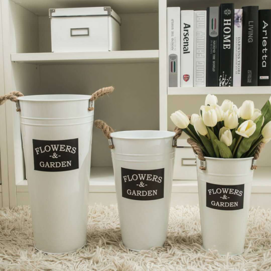 북유럽 목가적 인 복고풍 꽃 양동이 말린 꽃 꽃 가게 장식 화분 꽃꽂이 꽃꽂이 철 꽃 튜브 누출 없음스토어 가기