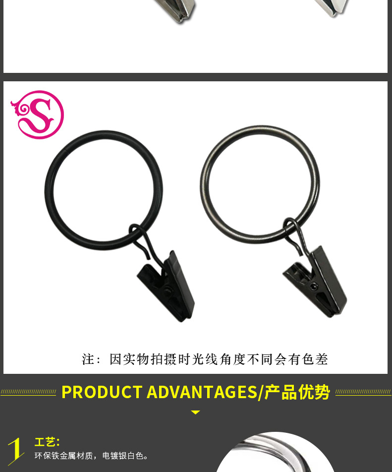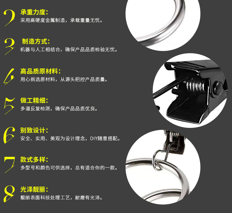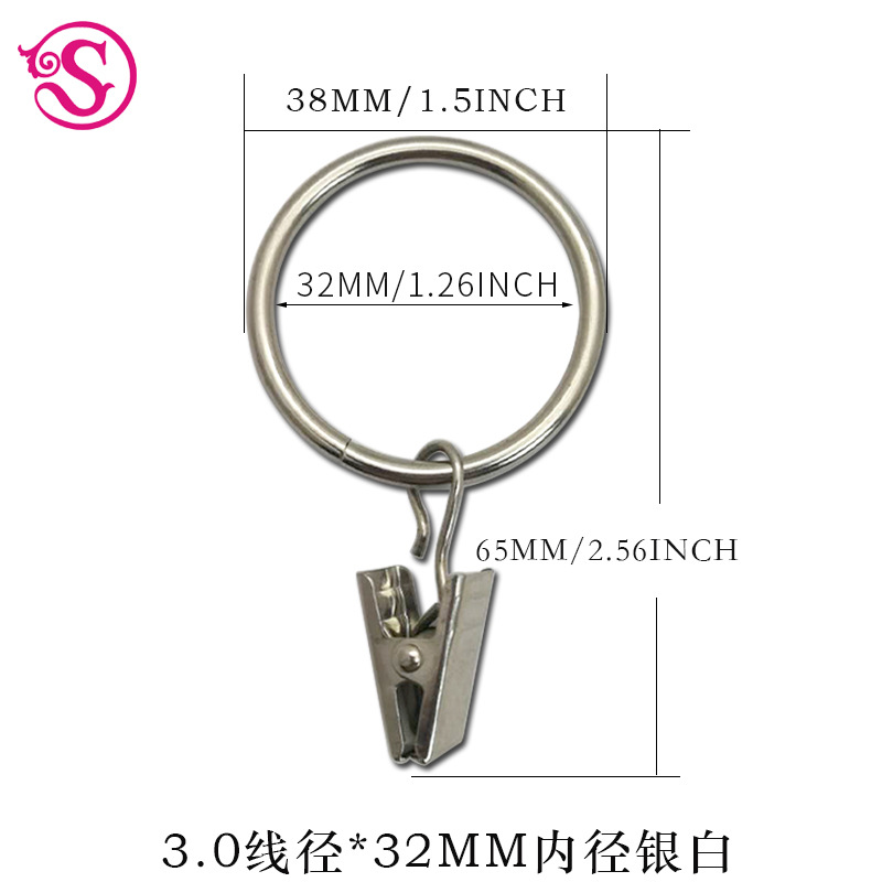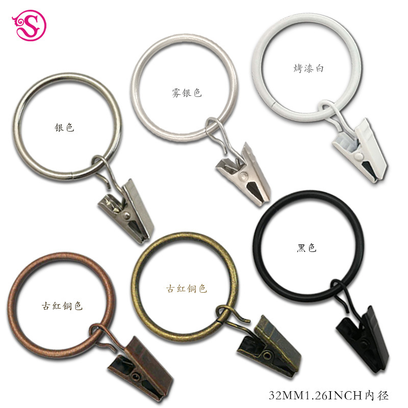 커튼 클립 32mm 내경 커튼 링 다목적 디자인 금속 커튼 링 클립 커튼 후크스토어 가기