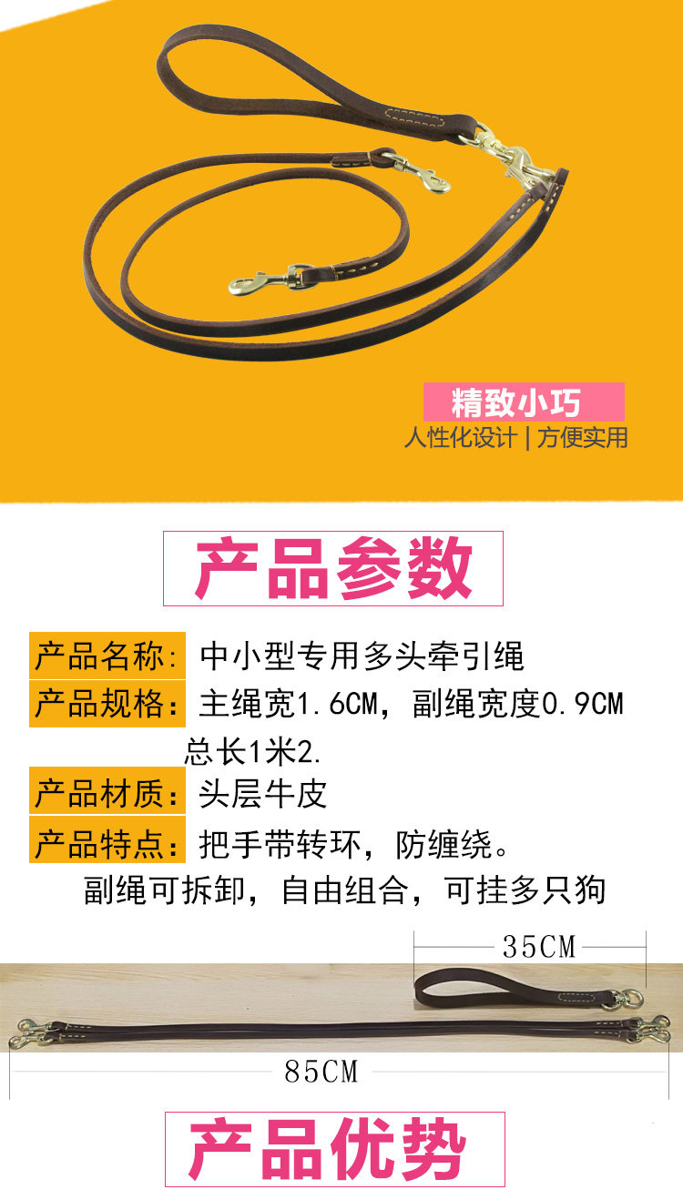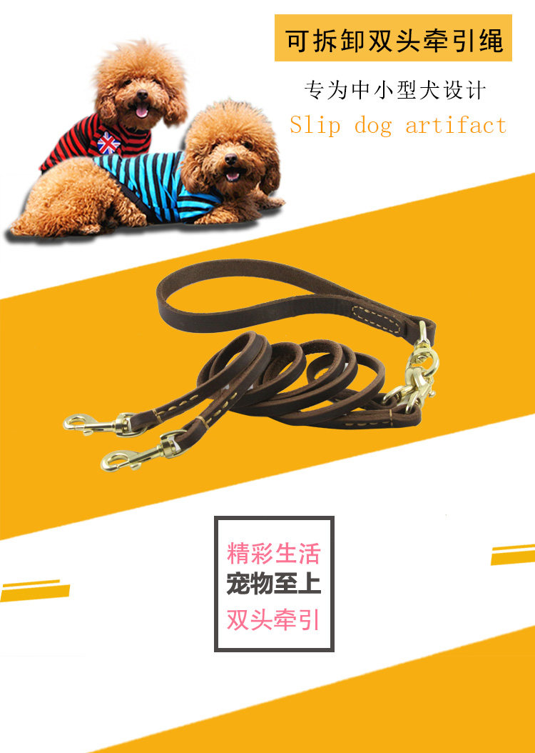 개 양머리 1 대 2 소 가죽 견인 로프 더블 개 체인 워킹 로프는 두 마리의 개 애완 동물 멀티 개 안티 와인딩