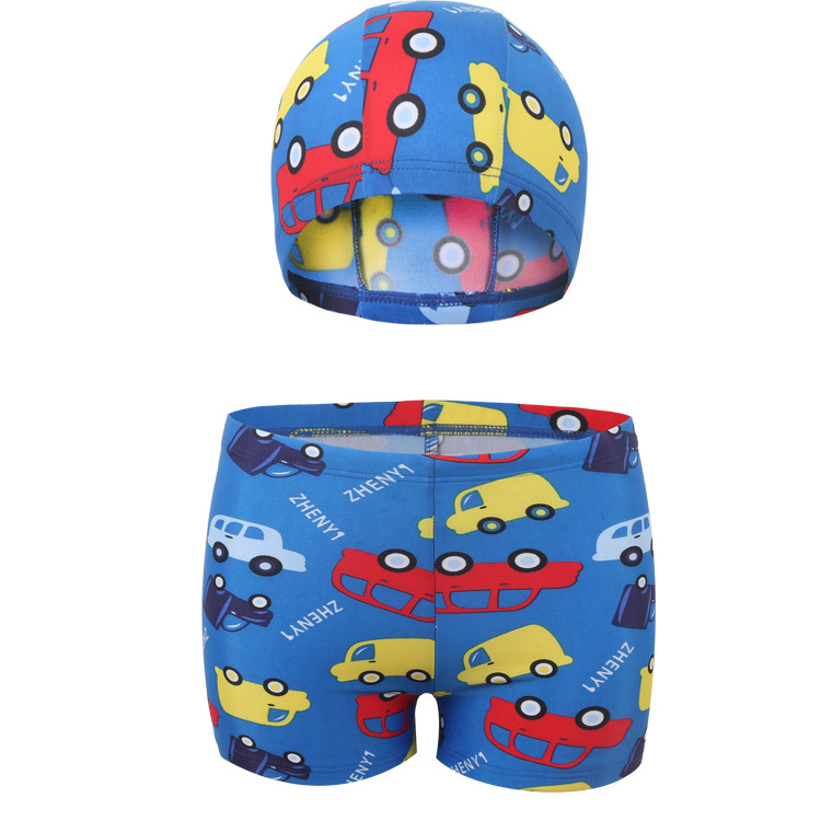 속건 어린이 수영 트렁크 소년 수영 모자 세트 한국의 귀여운 만화 인쇄 비치 복서 수영 트렁크 도매