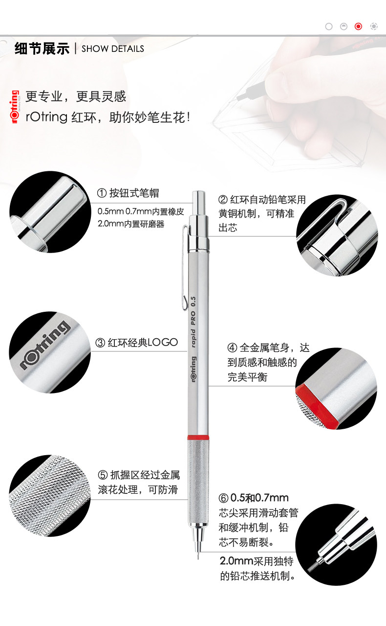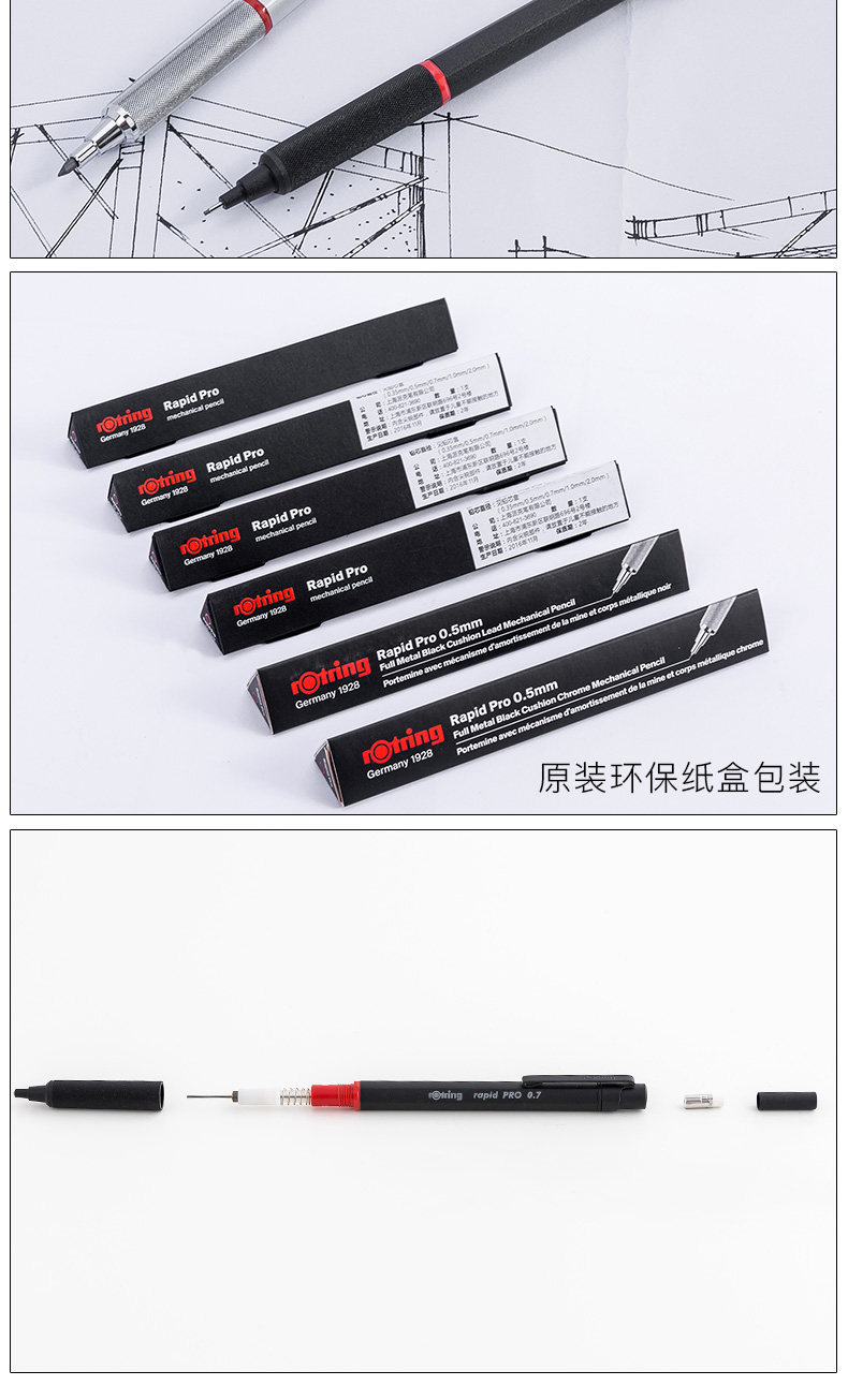 독일 Rotring 빨간 반지 급속 프로 자동 연필 건축 디자인 드로잉 라인 그리기 활성 연필스토어 가기