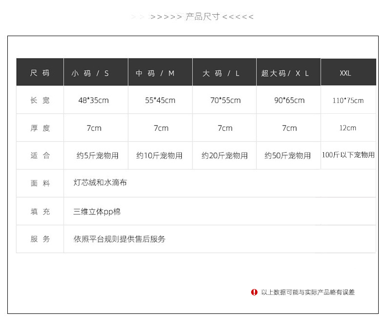 • Xxxl -110*75*12cm (100kg 미만의 애완 동물에게 적합))