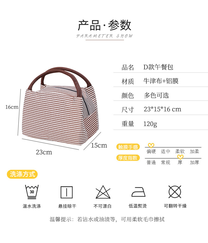 스트라이프 식기 냉 보존 가방 한식 급식 단열 가방 방수 휴대용 도시락 가방 밥 봉투 단열 가방