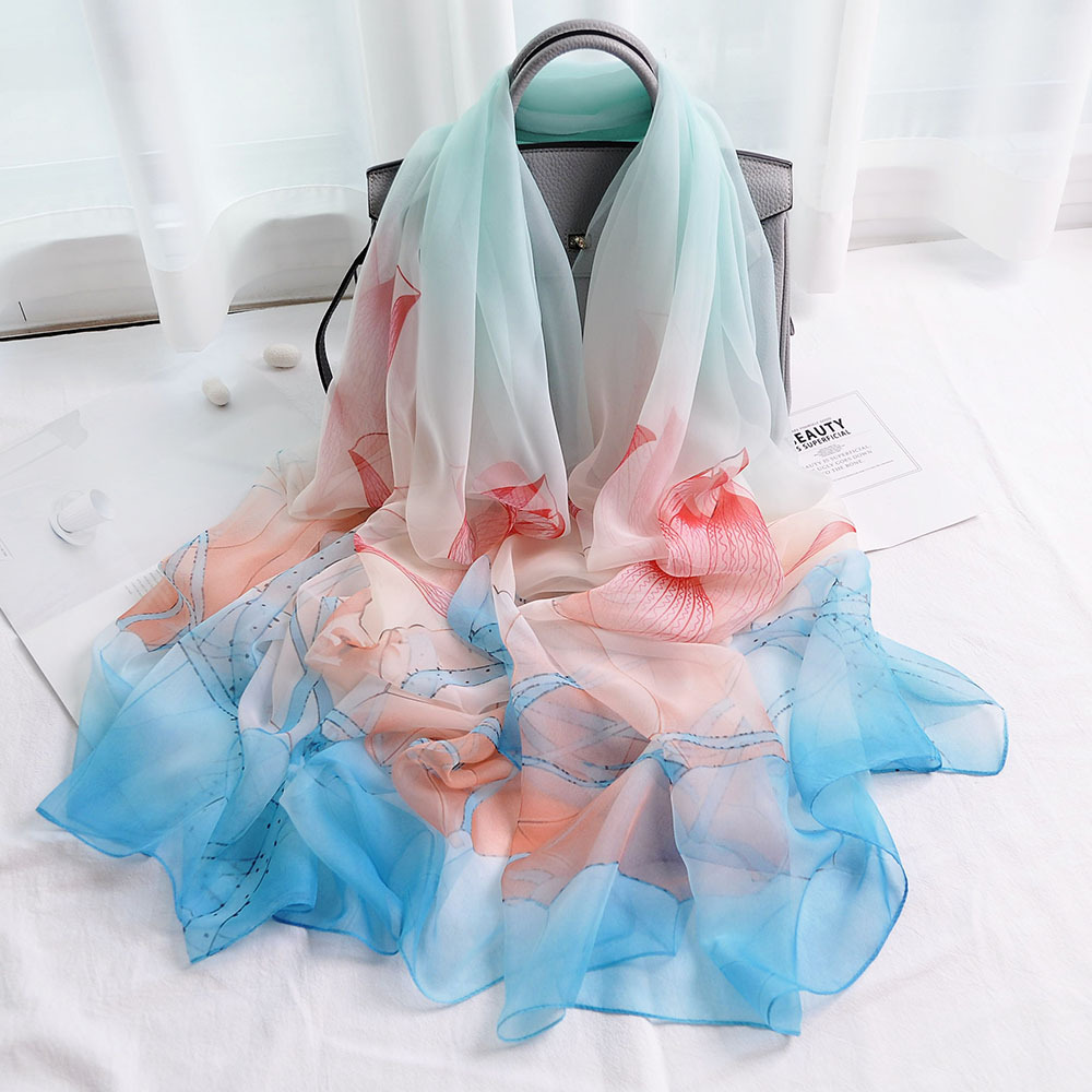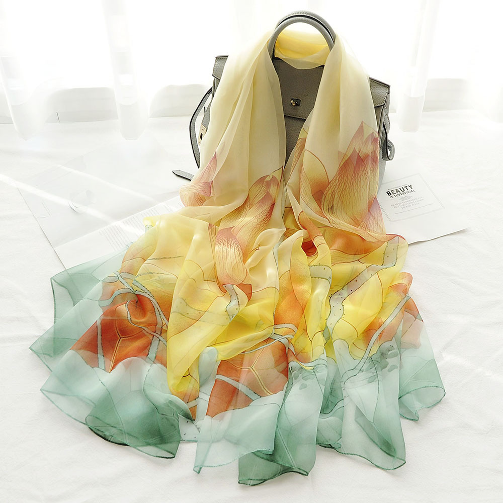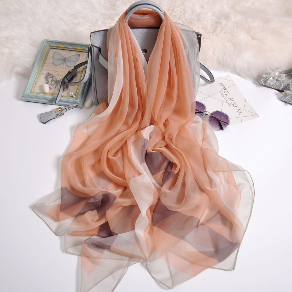 실크 스카프 영국 격자 무늬 실크 스카프 여성의 얇은 봄과 가을 얇은 스카프 Babag 자외선 차단제 장식 실크 스카프스토어 가기