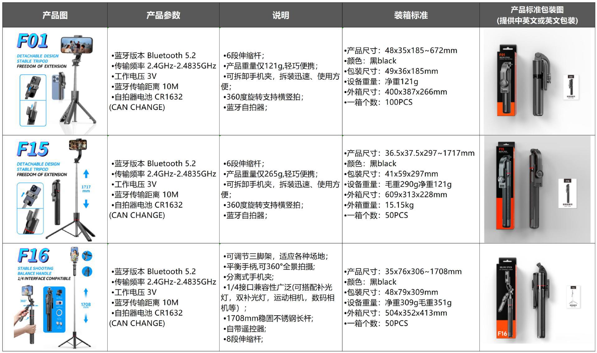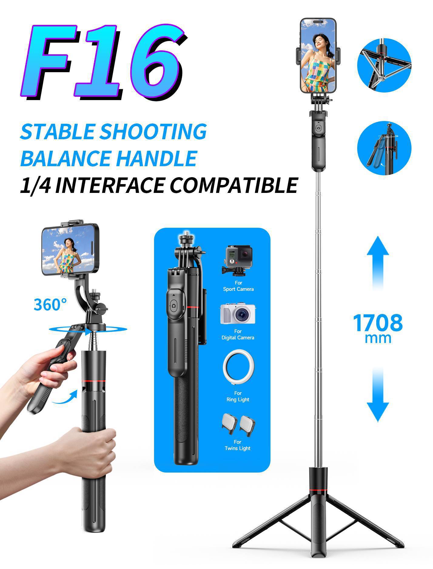 • F16 [블랙 스탠다드 에디션] 1.7m 스테인리스 스틸 봉 * 밸런스 핸들 * 1/4 인터페이스 * 블루투스 리모컨