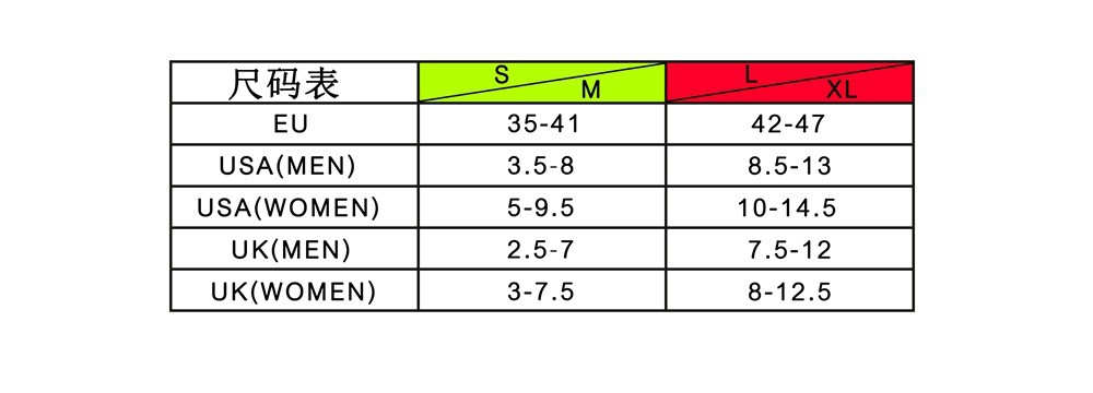 一、产品尺码: S/M:38-41码 L/XL:42-47码