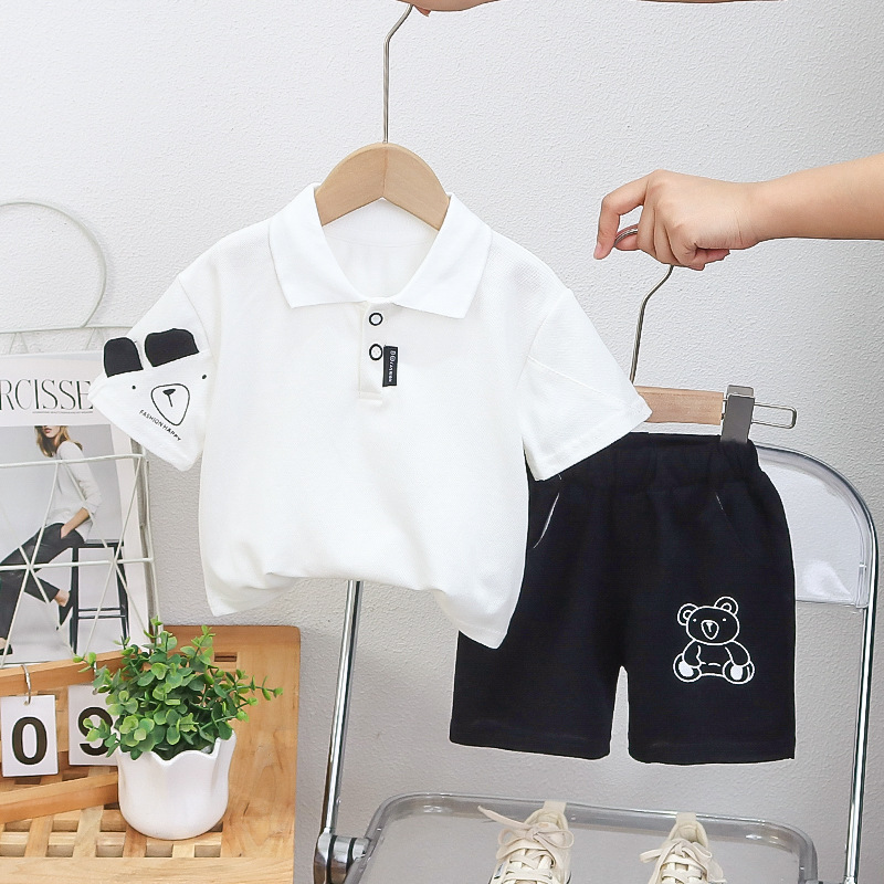 남자의 아기 여름 의류 세트 2023 새로운 아기 아동 의류 작은 소년 여름 반팔 폴로 셔츠 2 종 도매