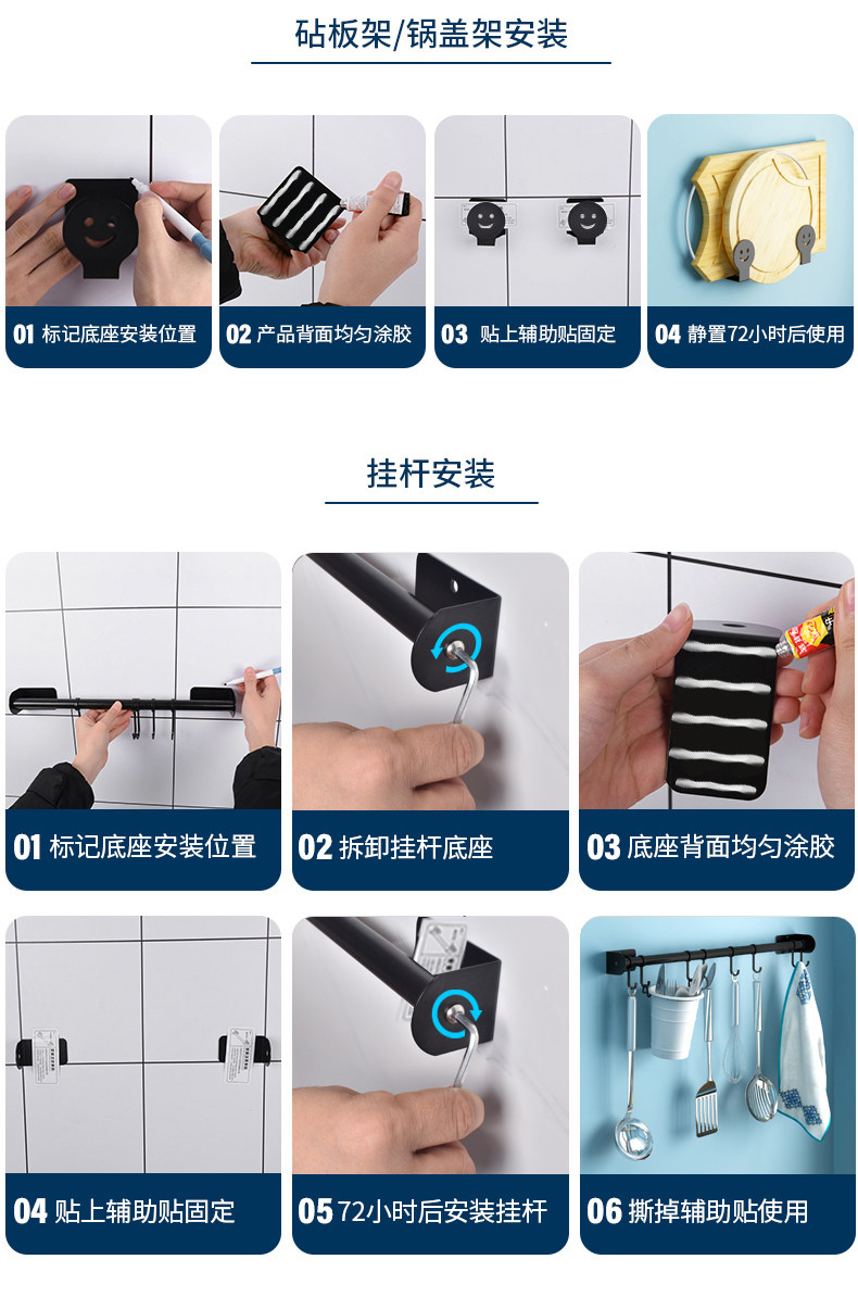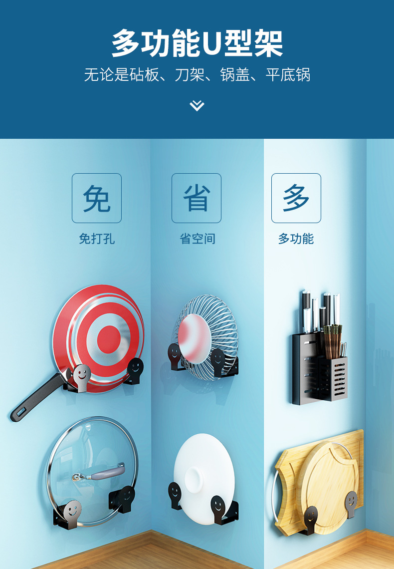 스테인레스 스틸 주방 수납 랙 냄비 뚜껑 랙 벽걸이 형 비 천공 도마 보관 랙 젓가락 주방 용품 칼 홀더